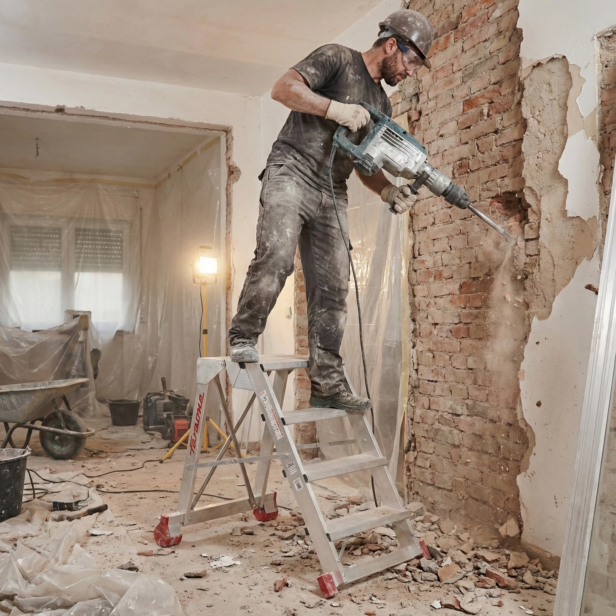 Taka konstrukcja sprawia, że wchodzenie i schodzenie z narzędziami jest znacznie płynniejsze, co bezpośrednio redukuje zmęczenie nóg i kręgosłupa przy wielokrotnym przemieszczaniu się w górę i w dół w ciągu dnia roboczego.