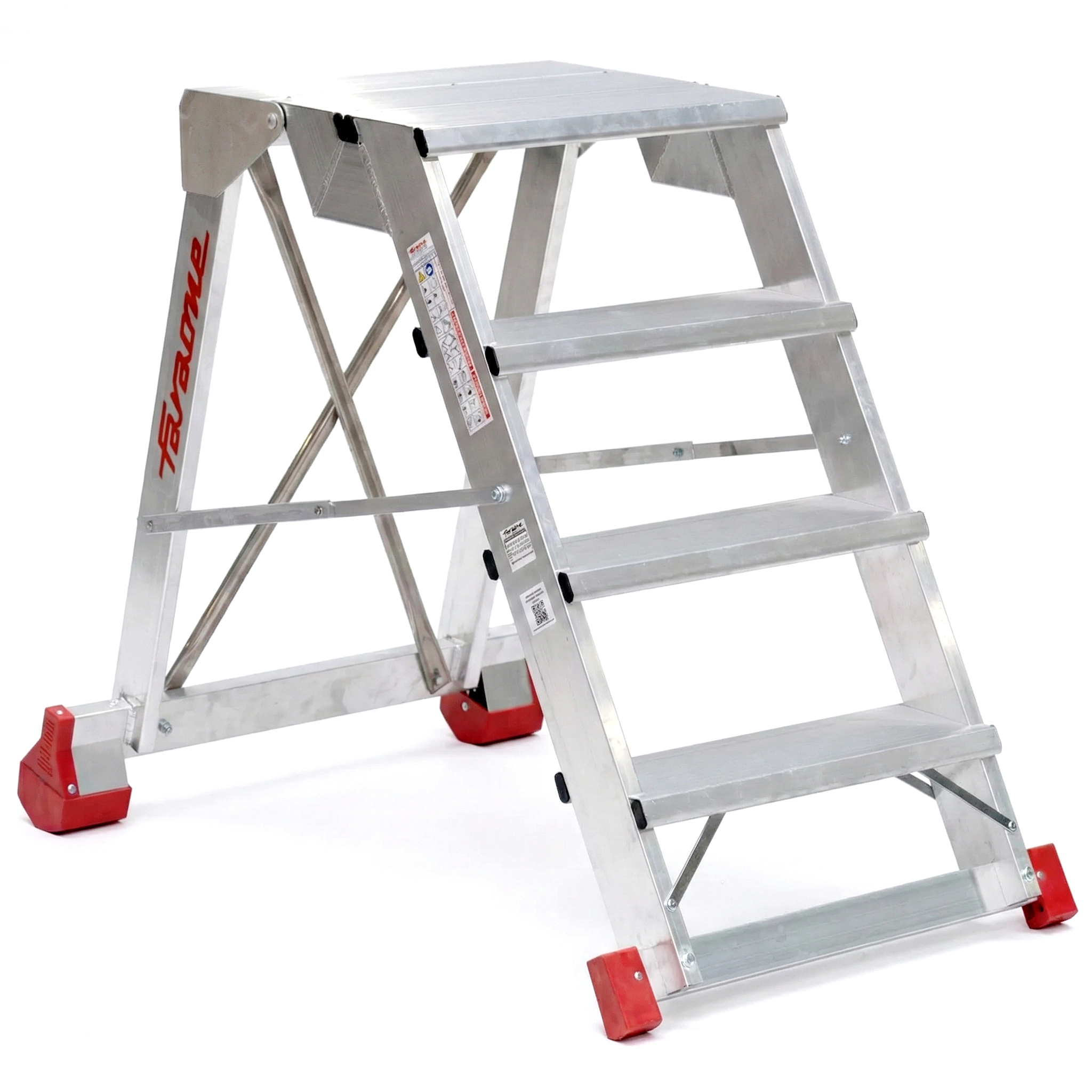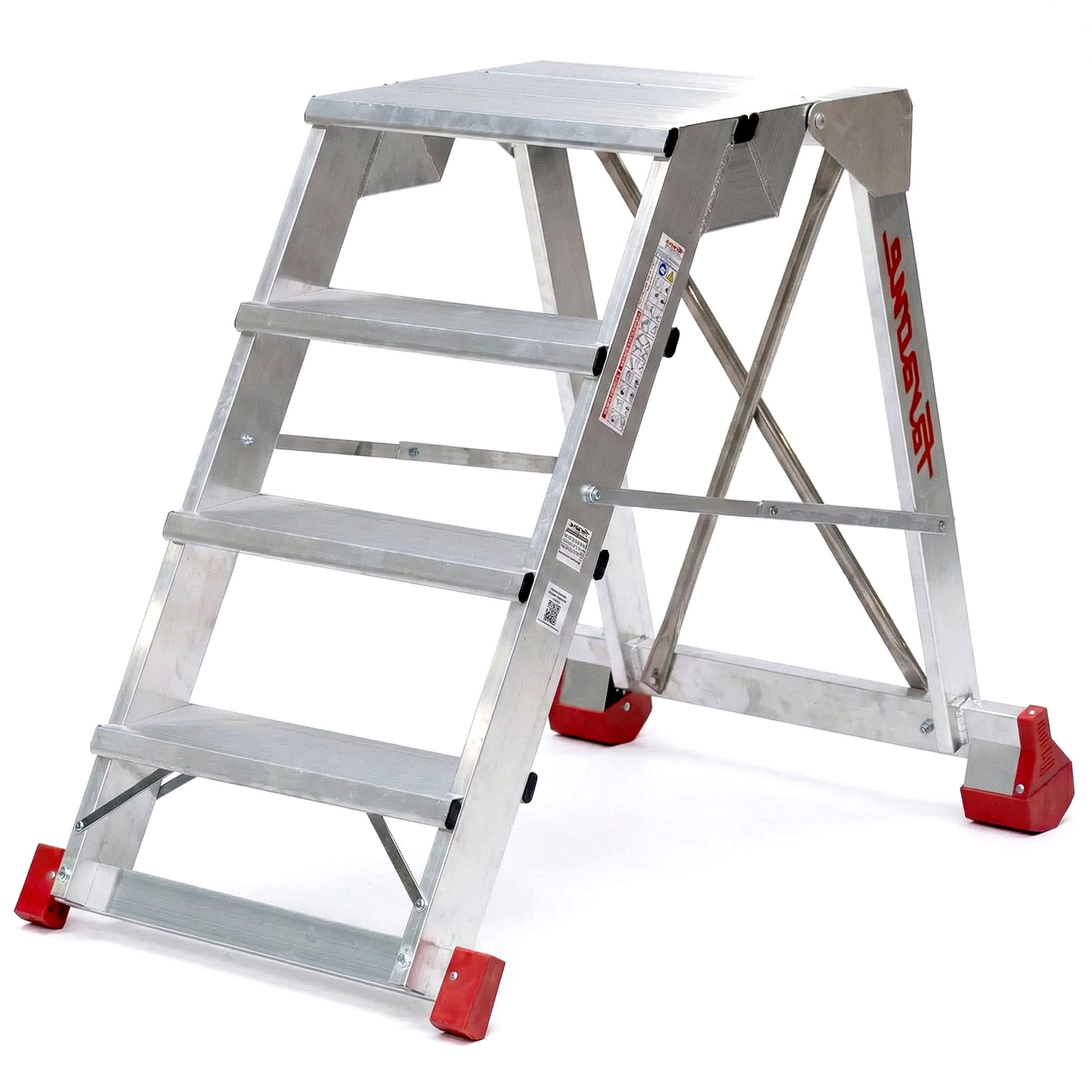 Bezpieczeństwo w tym modelu nie jest jedynie obietnicą, lecz wynika z zastosowania imponujących, głębokich na 15 cm stopni. Każdy z czterech stopni posiada wyraźne, głębokie ryflowanie o właściwościach antypoślizgowych, co jest kluczowe podczas pracy w zapylonym środowisku warsztatowym lub na placu budowy.