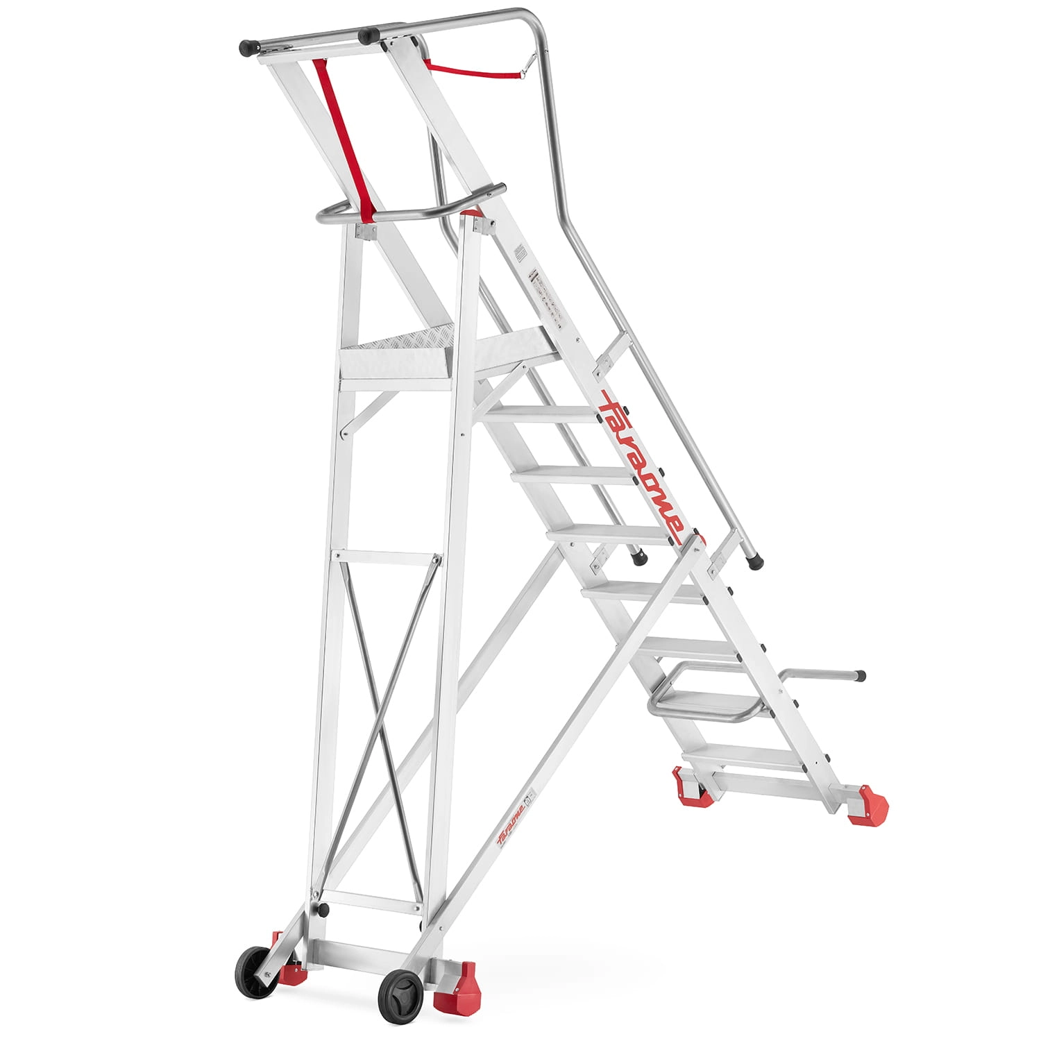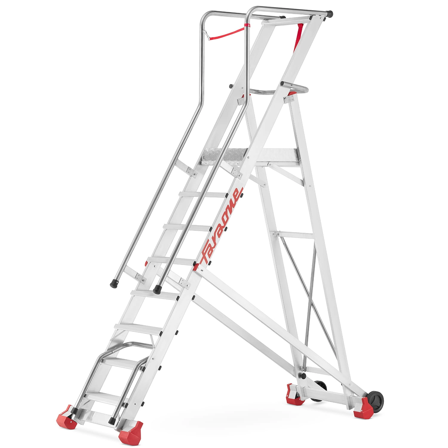 Drabina magazynowa podest aluminiowy FARAONE 400/SMT - wysokość robocza 5,40 m