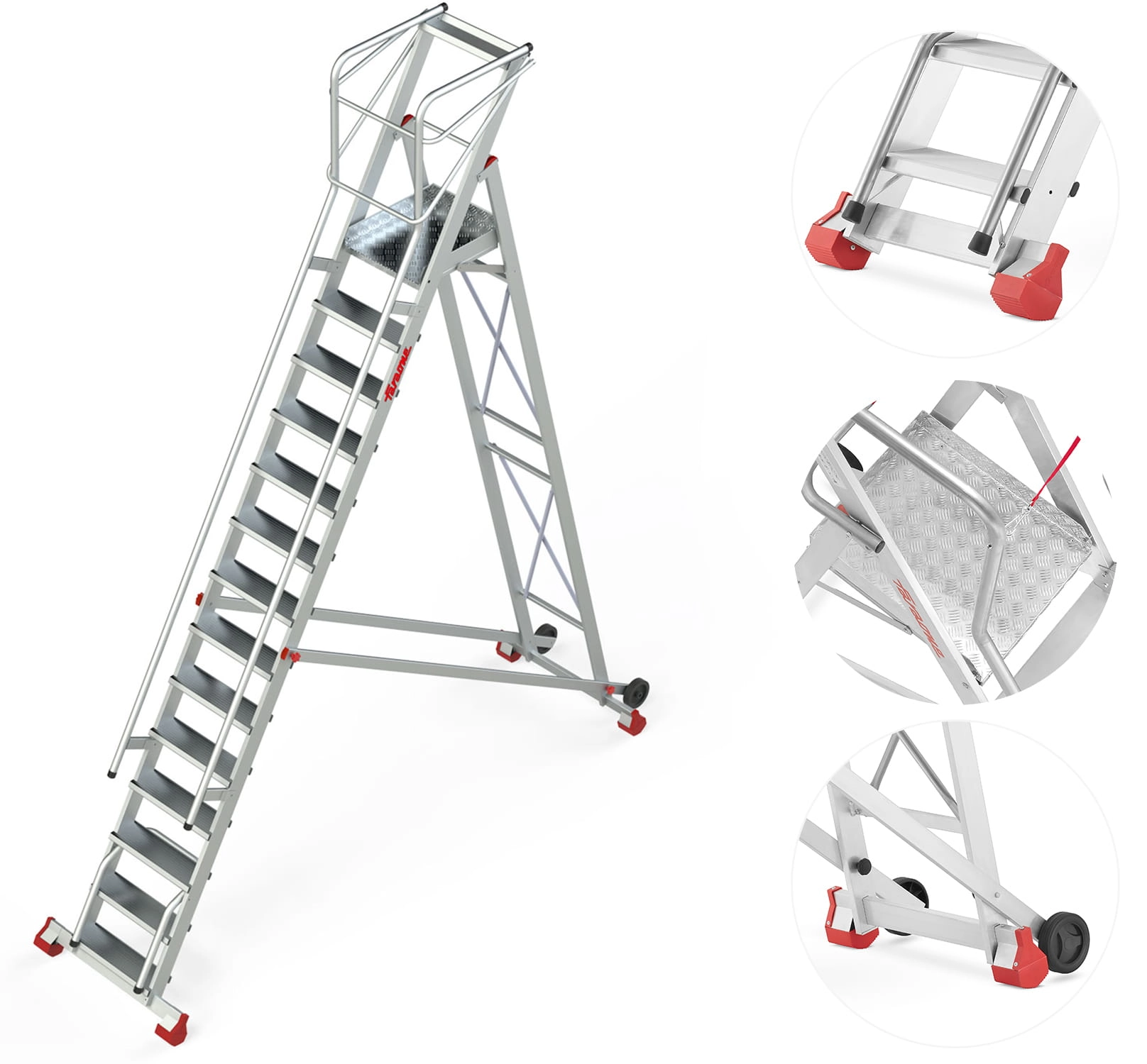 ✅ bardzo bezpieczna: najbardziej sztywna i mocna drabina magazynowa na rynku