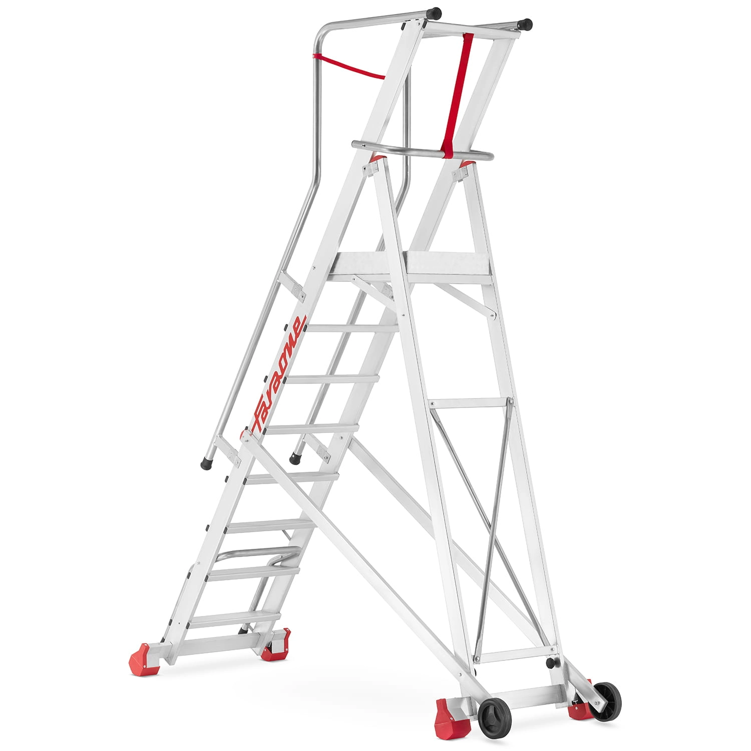 Drabina magazynowa podest aluminiowy FARAONE 500/SMT - wysokość robocza 6,12 m