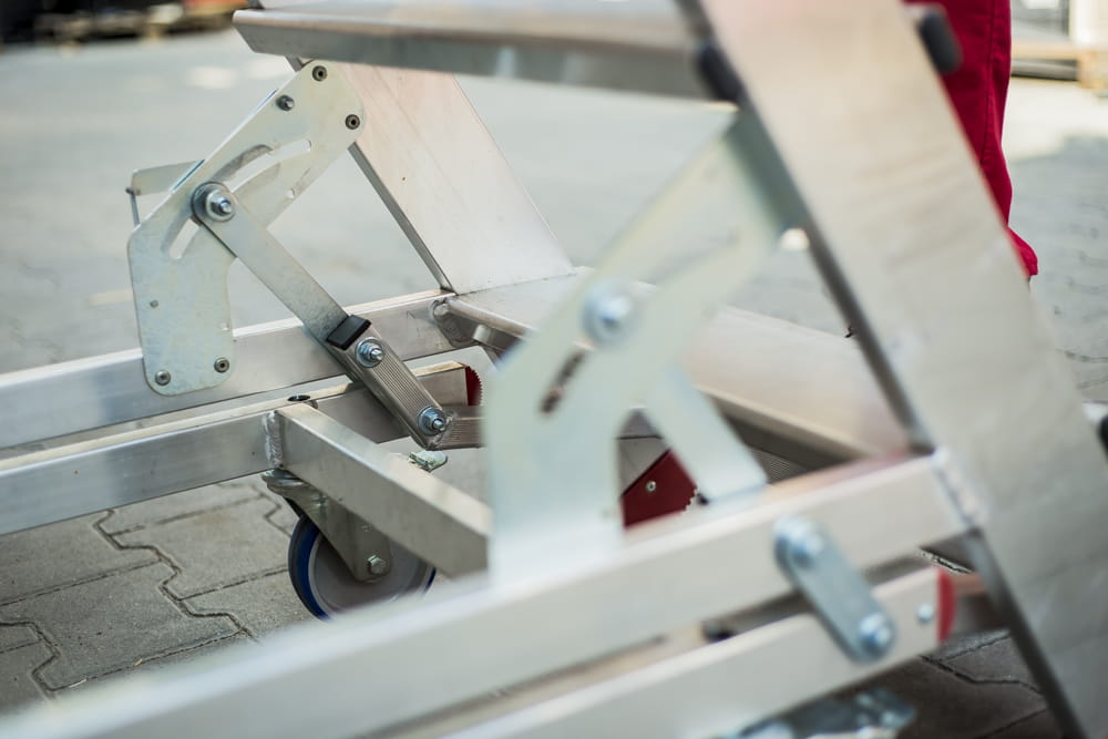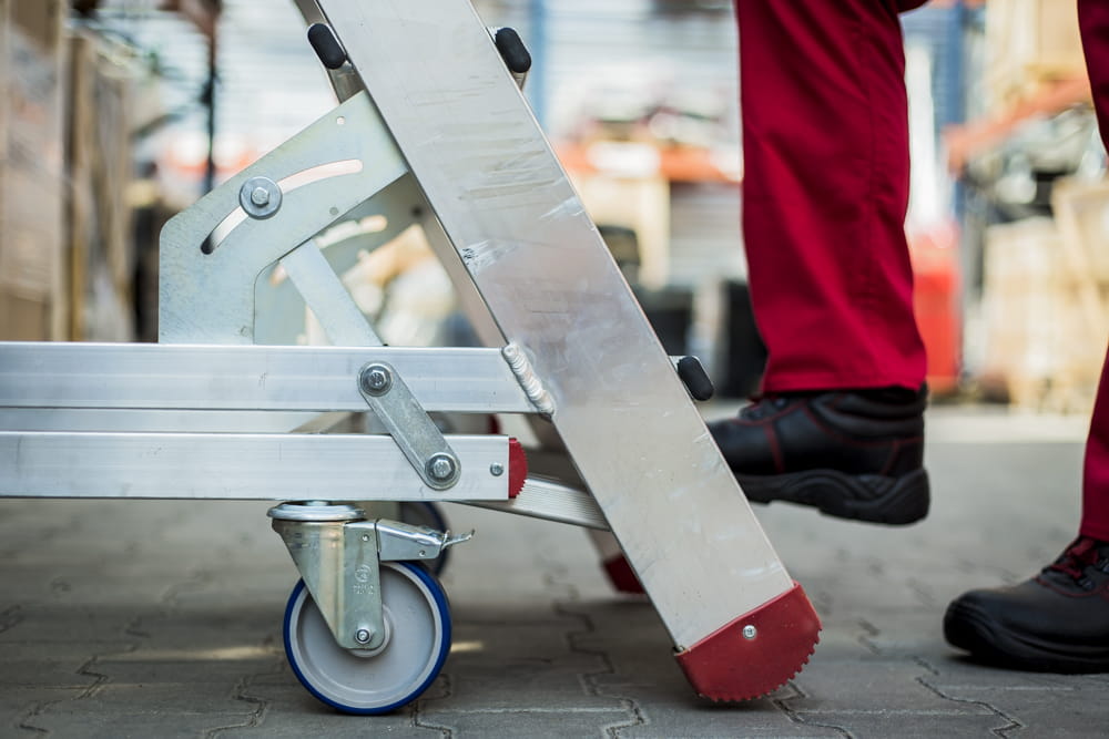 lekka konstrukcja schodów w połączeniu z rolkami i uchwytami do przesuwania zapewnia wygodną pracę