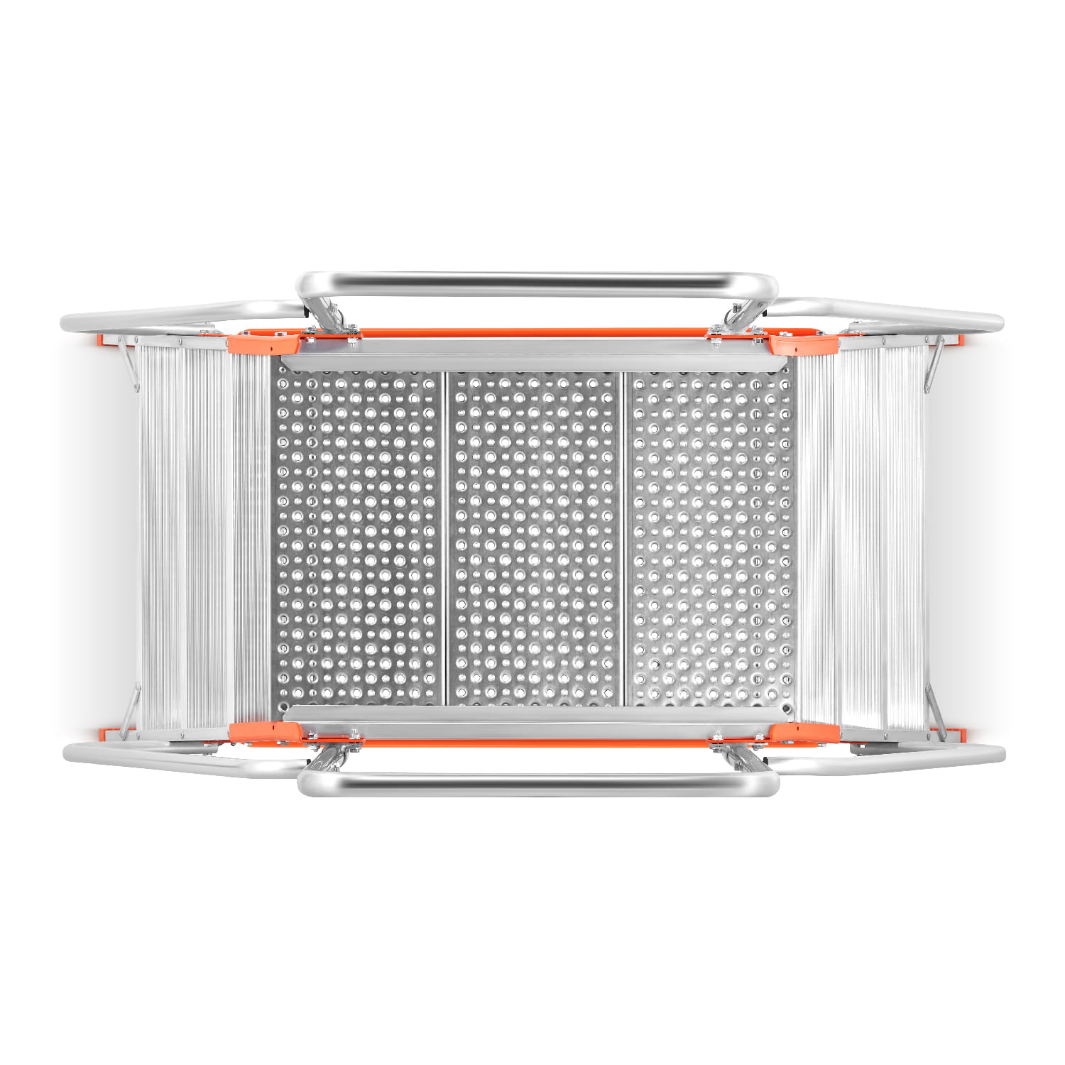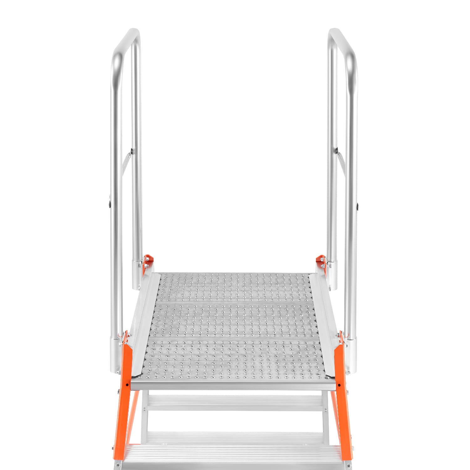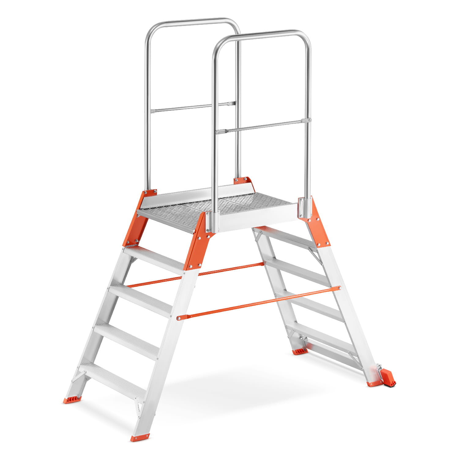 - Platforma robocza z powierzchnią antypoślizgową z perforowanej blachy aluminiowej o wymiarach: 0,56 m (szerokość) x 0,77 m (długość)