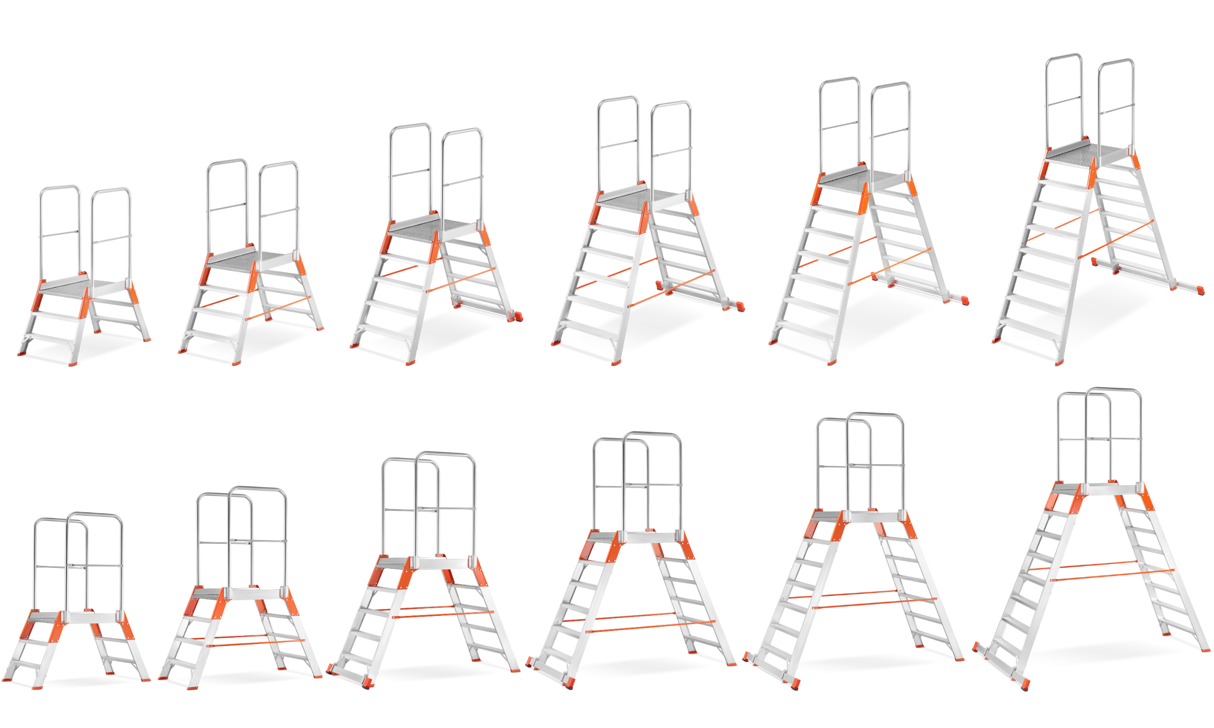 - Wybierz model drabiny, kierując się optymalną wysokością podestu i wymaganym zasięgiem roboczym.