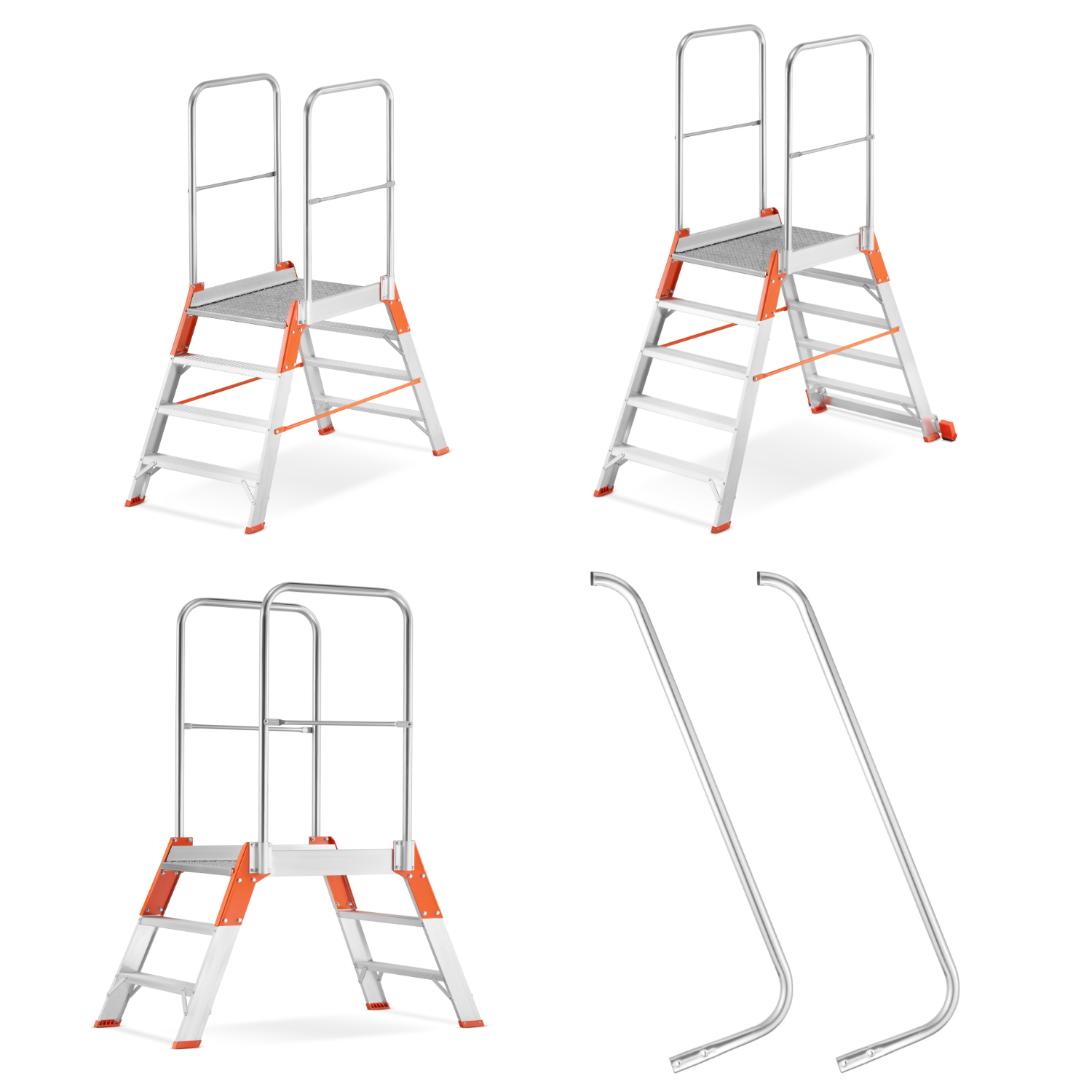 - Wybierz model drabiny, kierując się optymalną wysokością podestu i wymaganym zasięgiem roboczym.