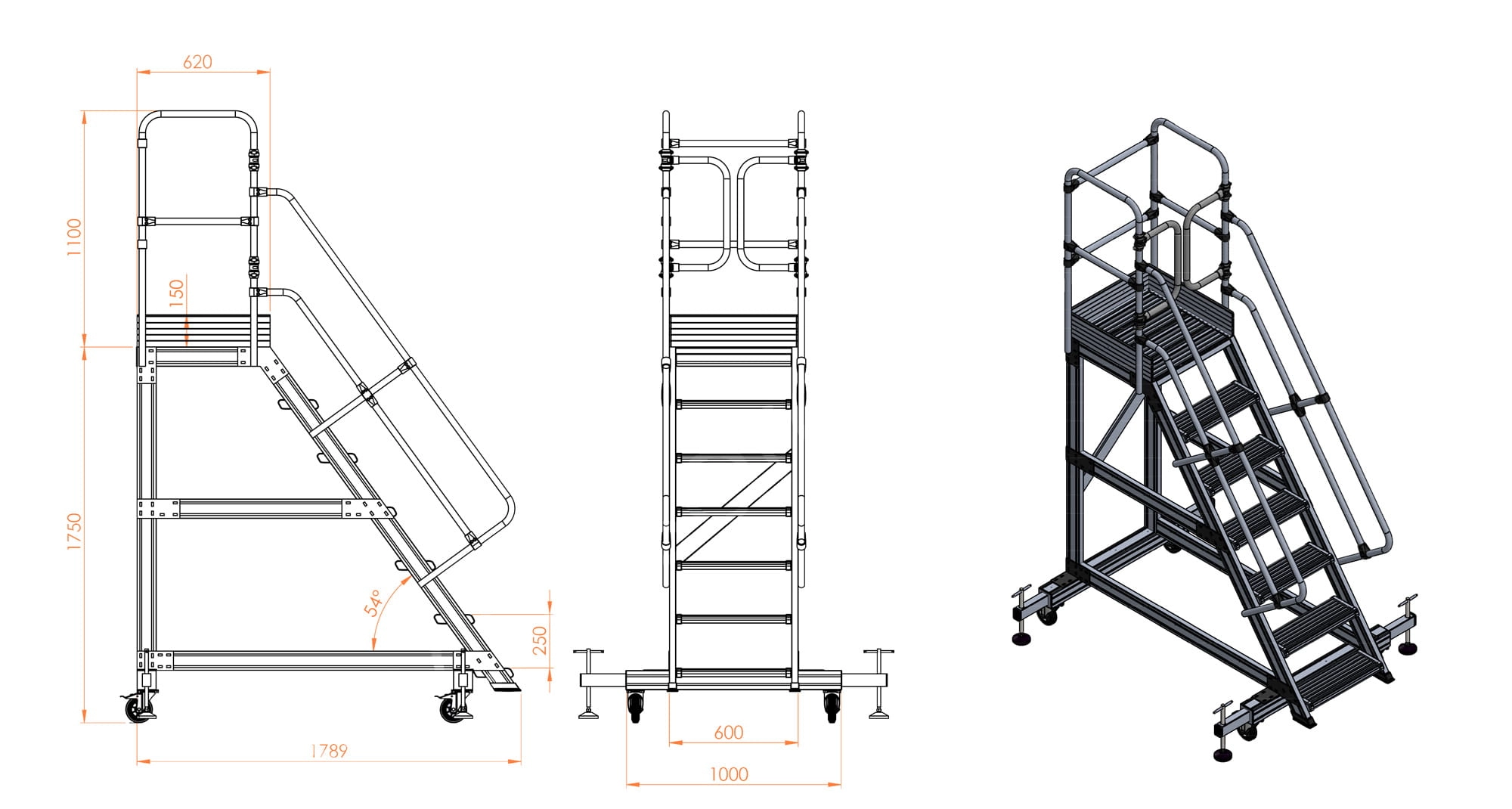 - wymiary podestu: szerokość - 0,60 m x głębokość - 0,62 m