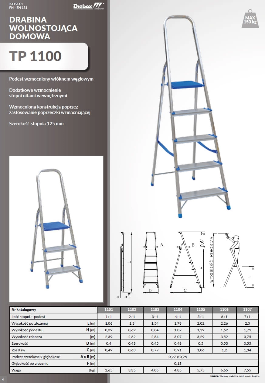 Drabina wolnostojąca DRABEX TP 1101 2-stopniowa 2,39 m