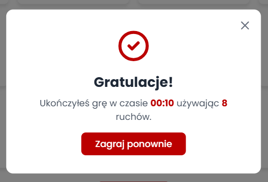 Wyobraź sobie klasyczną grę pamięciową, w której Twoim zadaniem jest jak najszybsze odkrycie kafelków i połączenie ich w pary. Brzmi prosto? Może i tak, ale liczy się refleks i bystre oko! Im krótszy czas, tym lepszy wynik! Po ukończeniu gry zrób zrzut ekranu, na którym wyraźnie widać Twój czas, i umieść go w komentarzu pod postem konkursowym na naszym profilu na Facebooku. Link do gry znajdziesz zarówno w poście, jak i tutaj: https://gra-pamieciowa-higher.my.canva.site/
