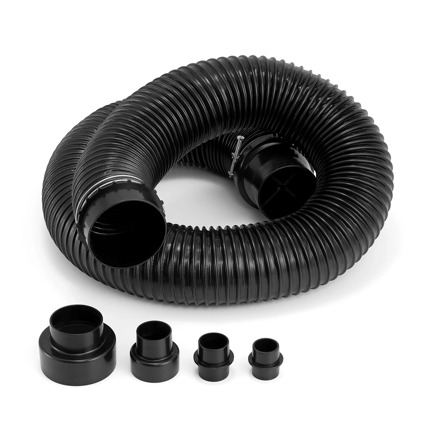 - Kompleksowy zestaw 4 adapterów (100 -> 69 mm, 63 -> 46 mm, 40 -> 40 i 35 -> 35 mm), co pozwala na łatwe dopasowanie odpylacza do różnych urządzeń i maszyn stolarskich.