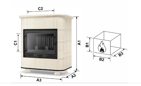 - wysokość paleniska (wymiar B1): 40,0 cm