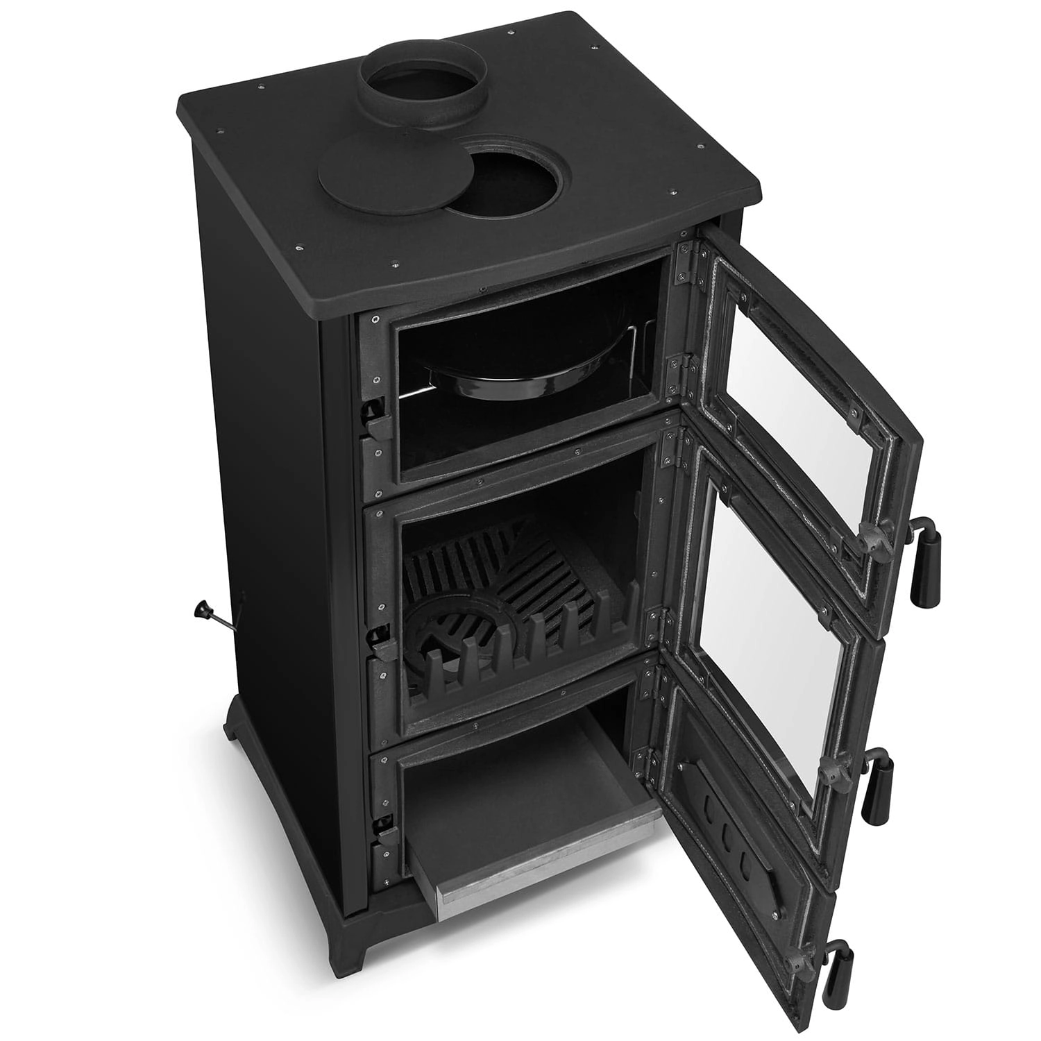 - Szyba żaroodporna: TAK (palenisko + piekarnik)
