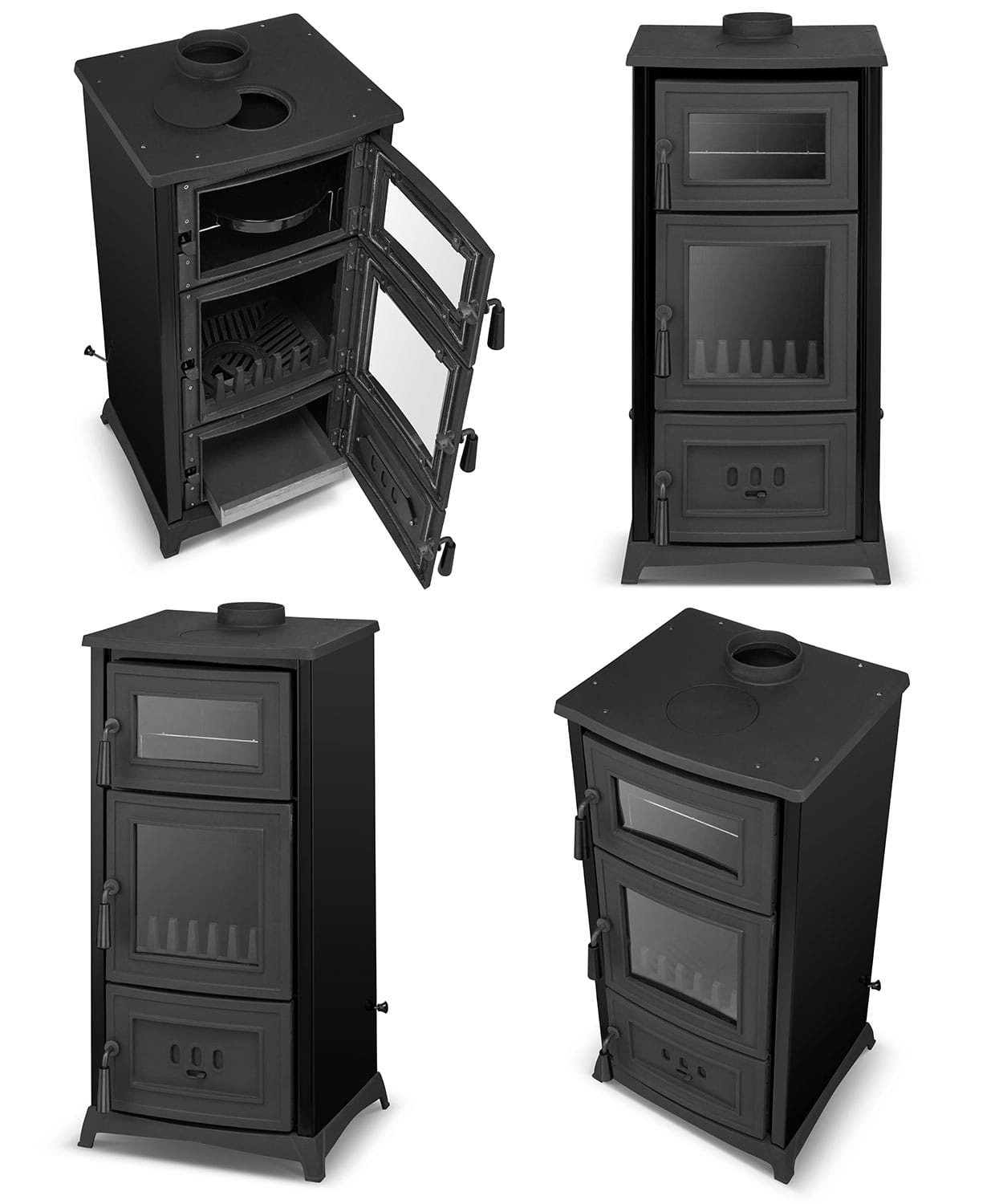 To, co spalamy w komorze spalania jest zamieniane na energię cieplną, którą możemy wykorzystać na trzy sposoby: do ogrzewania pomieszczenia, do podgrzewania i gotowania (gorąca płyta grzewcza) oraz do pieczenia (funkcja piekarnika). Dzięki takiemu wykorzystaniu energii nie jesteś uzależniony już od kuchni gazowej czy elektrycznej.