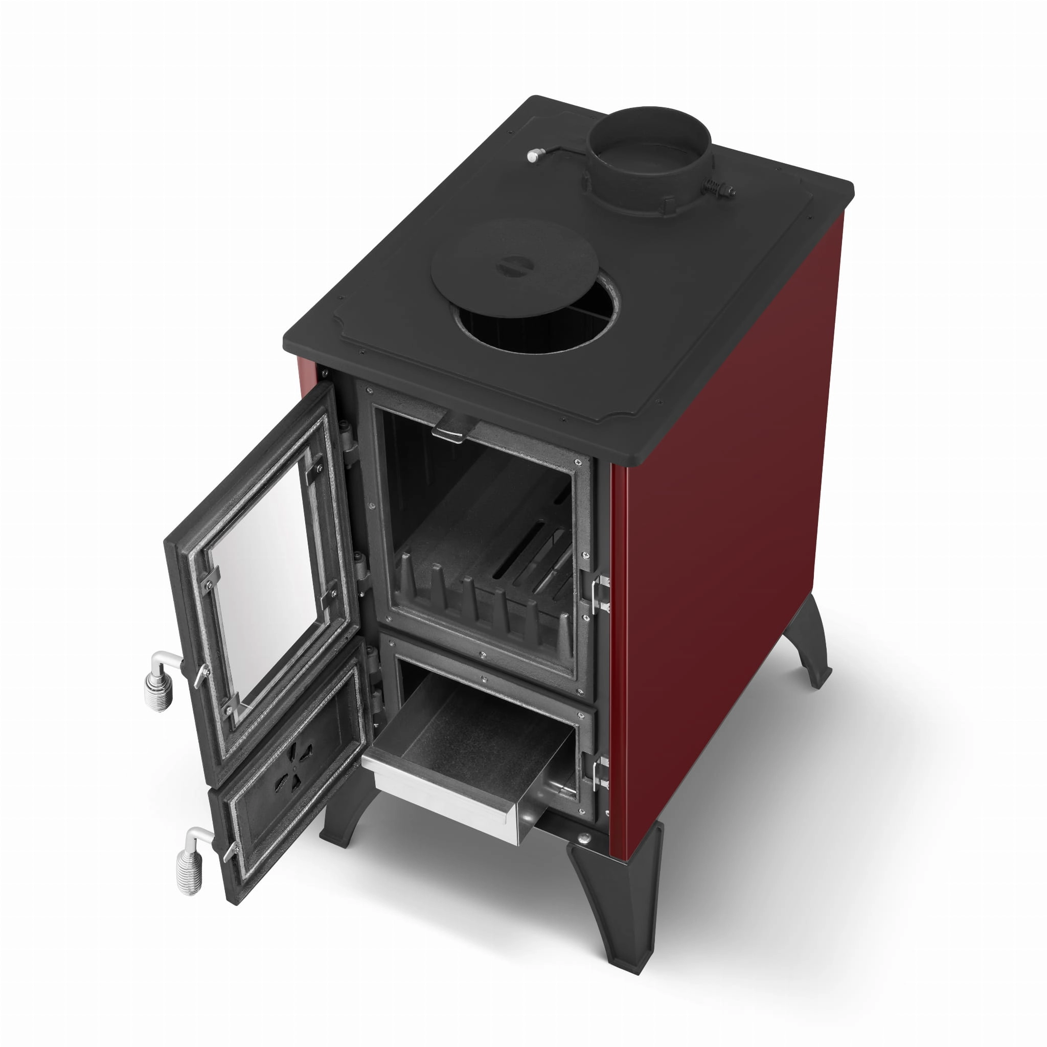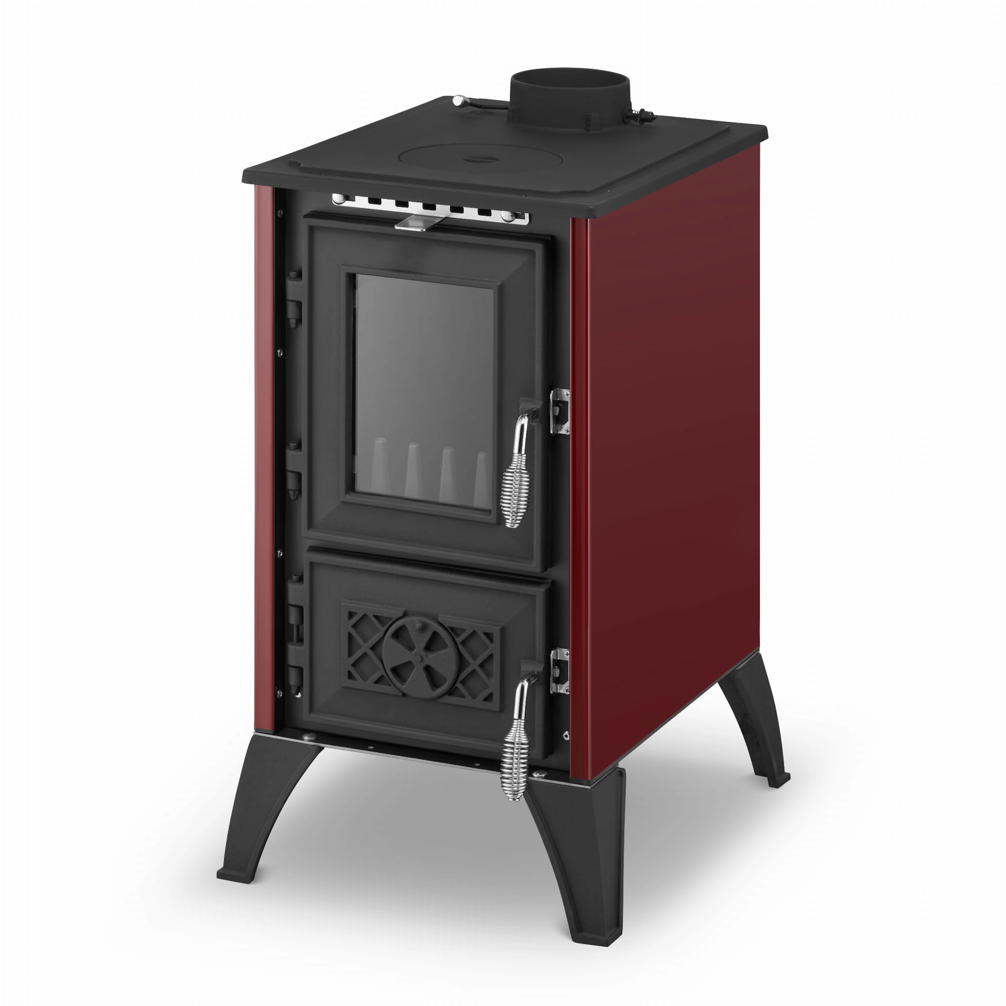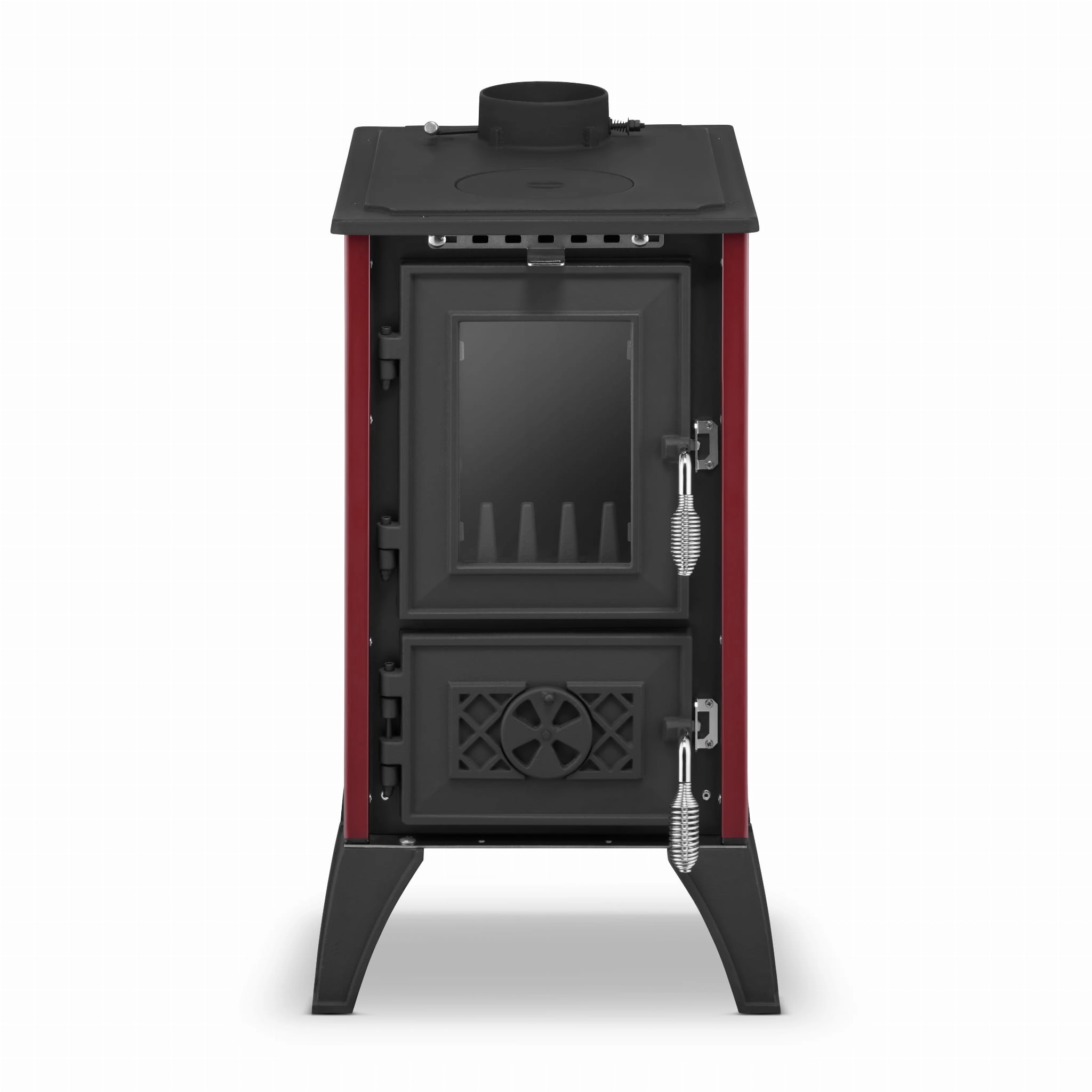 Piec kominek koza żeliwny z płytą grzewczą i fajerką IGLO 805 kolor bordowy