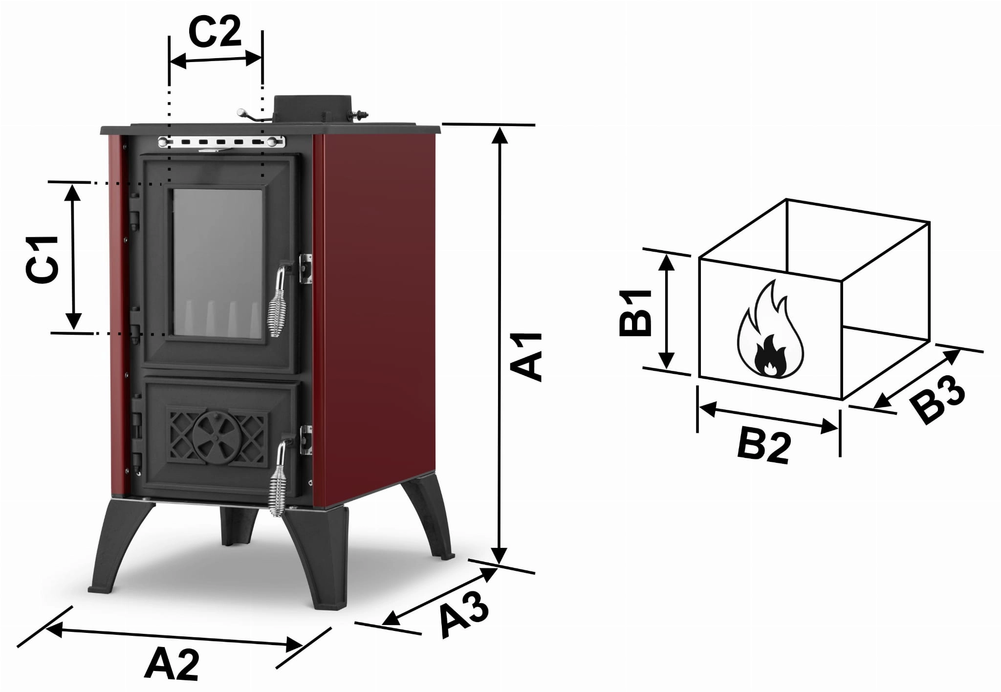 - Maksymalne spalanie drewna: 1,5 kg / godzinę