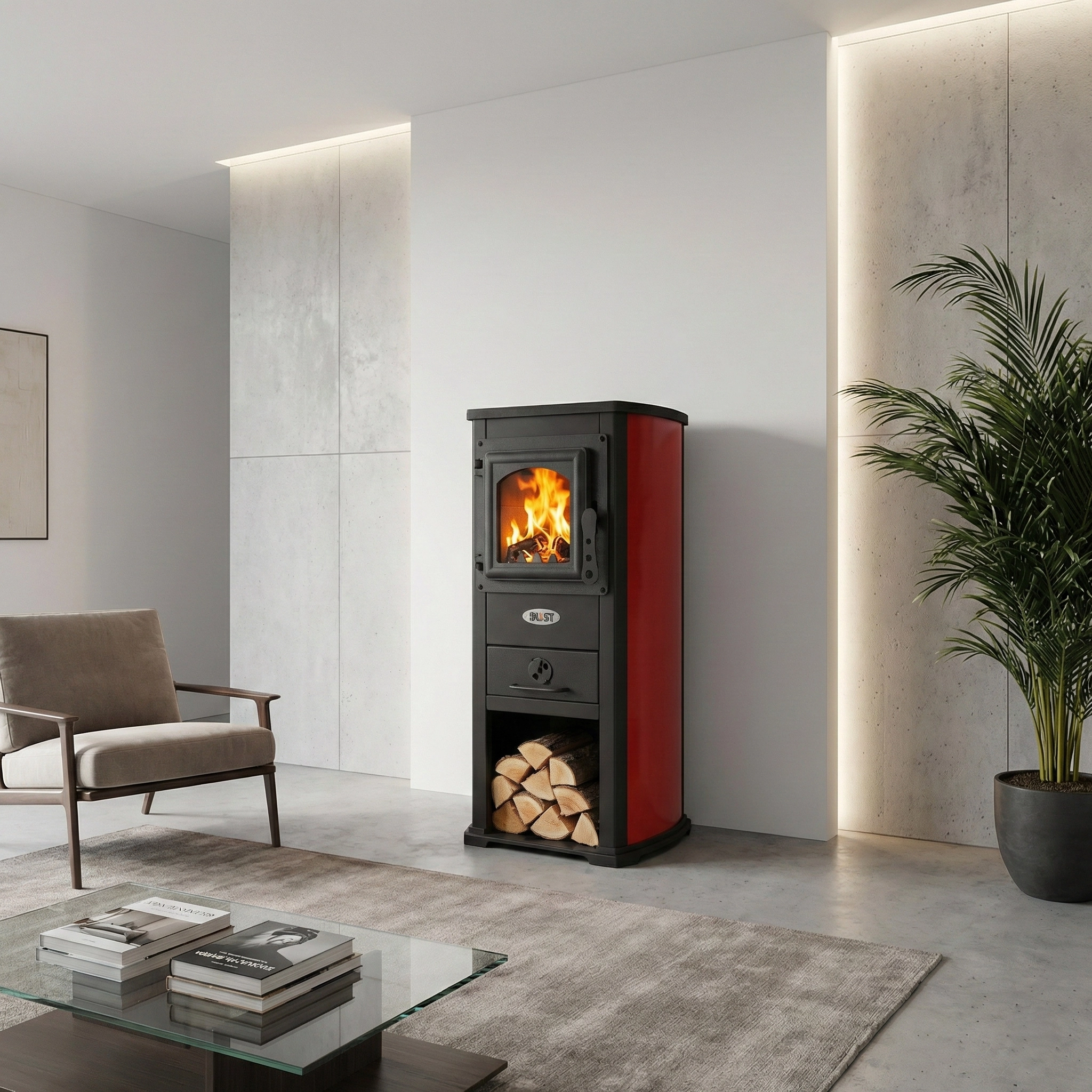 Piec stalowy kominek wolnostojący BLIST Ekonomik Lux / BERNA LUX 5,3 kW czerwony