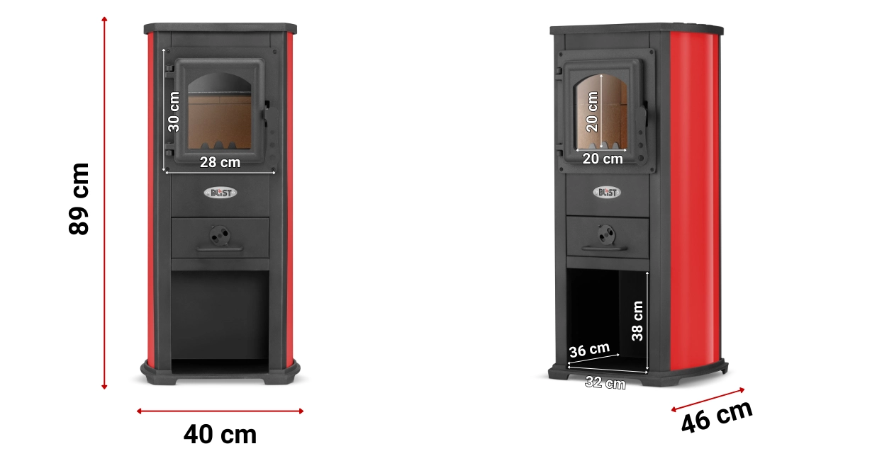 - Wymiary paleniska (szer. x głęb. x wys.): 24 x 28 x 36 cm