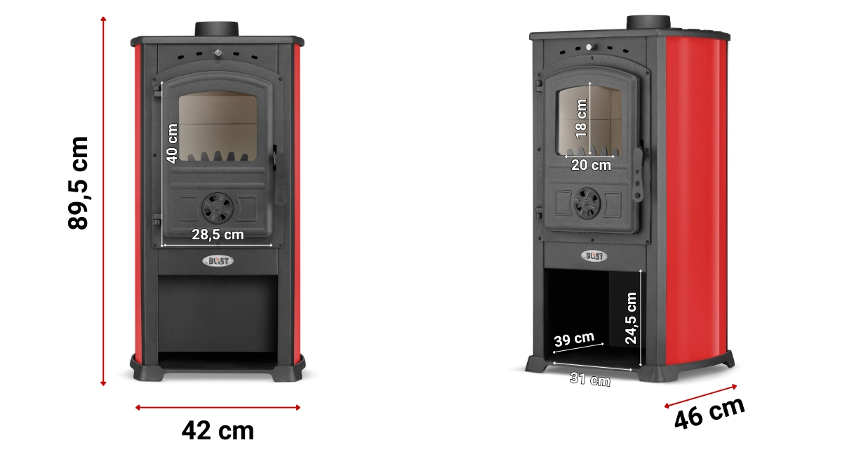 - Wymiary paleniska (szer. x głęb. x wys.): 35 x 32 x 36 cm