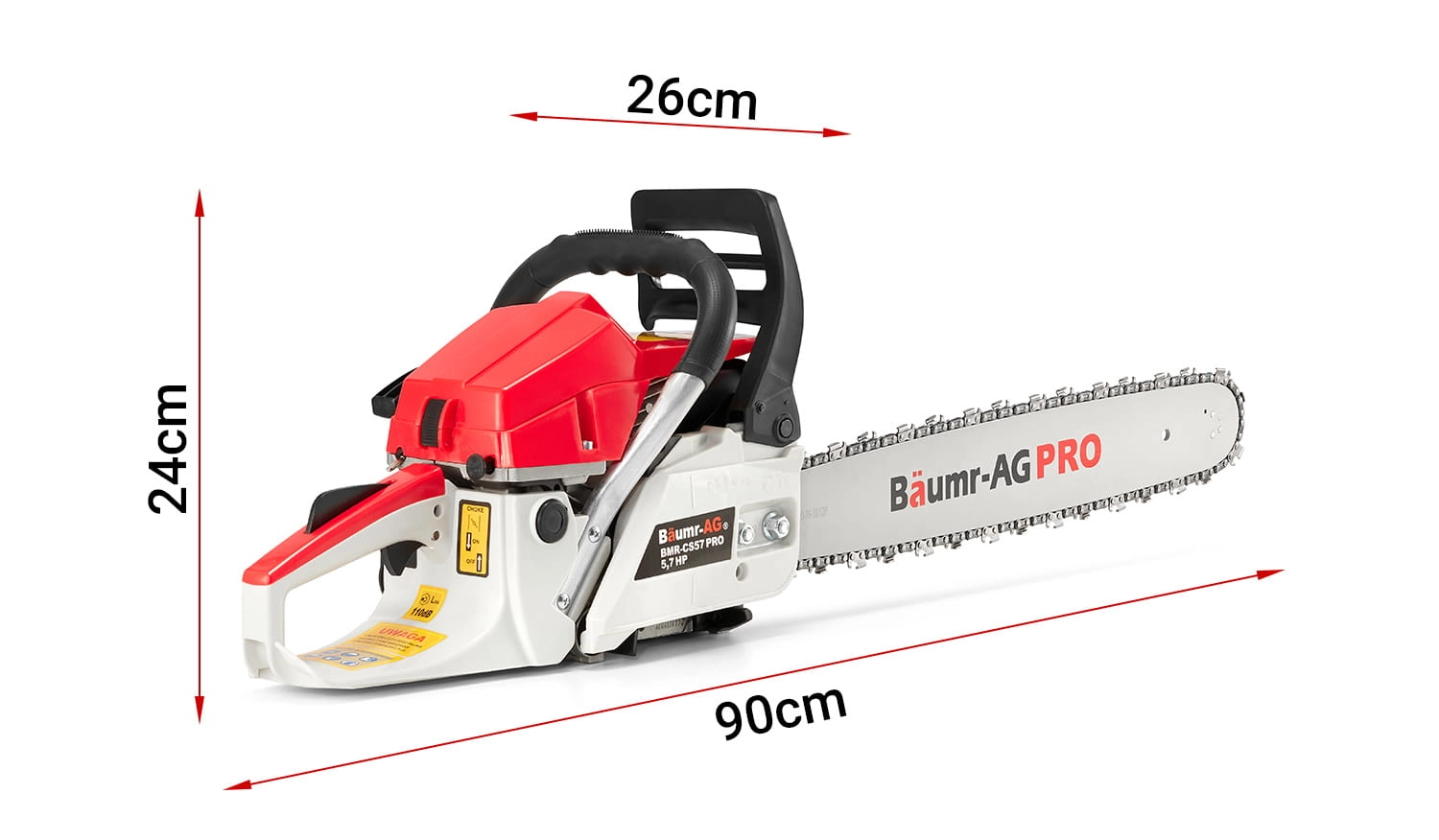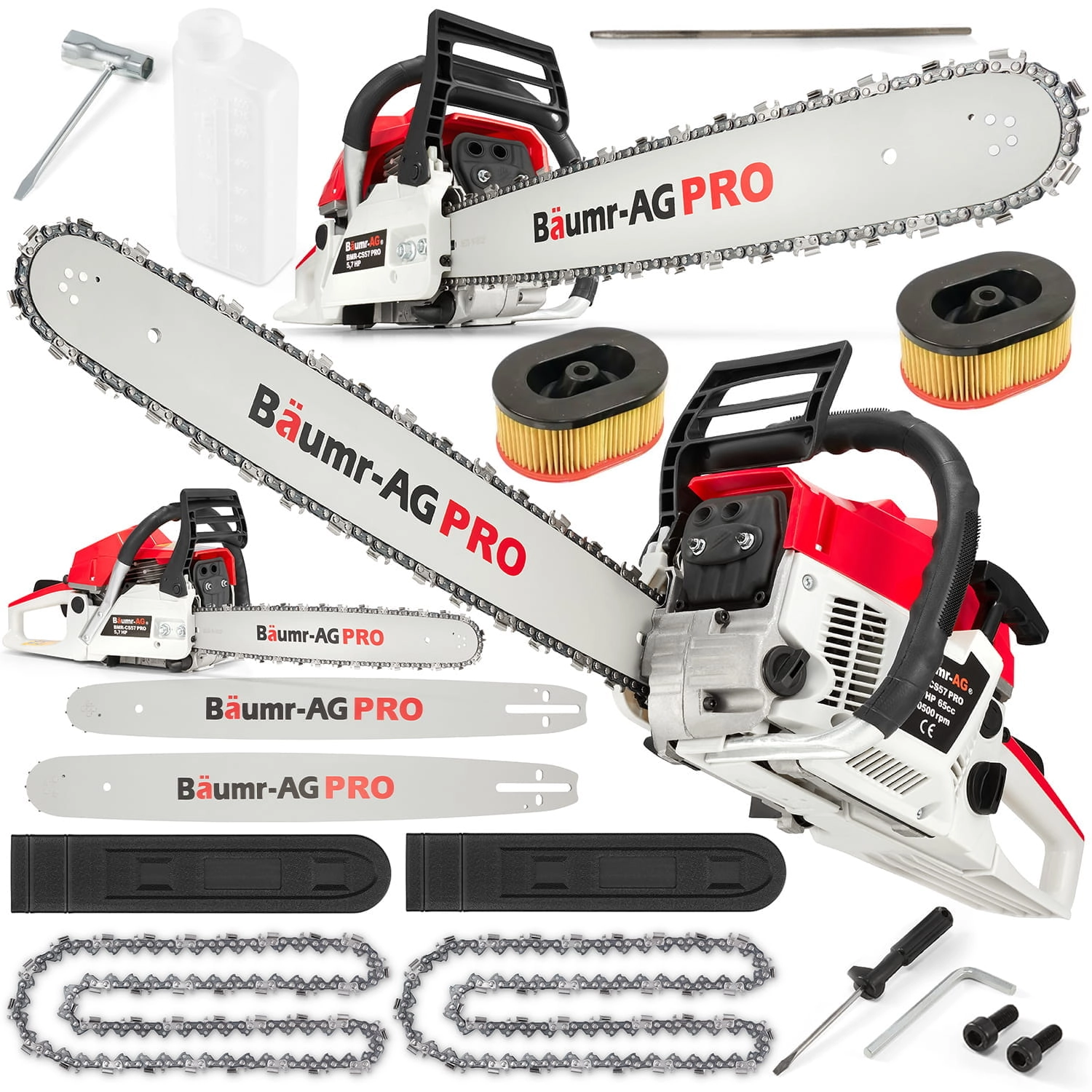 Piła łańcuchowa, spalinowa pilarka do drewna BAUMR-AG 5,7 KM + 2x filtr powietrza + dodatki!