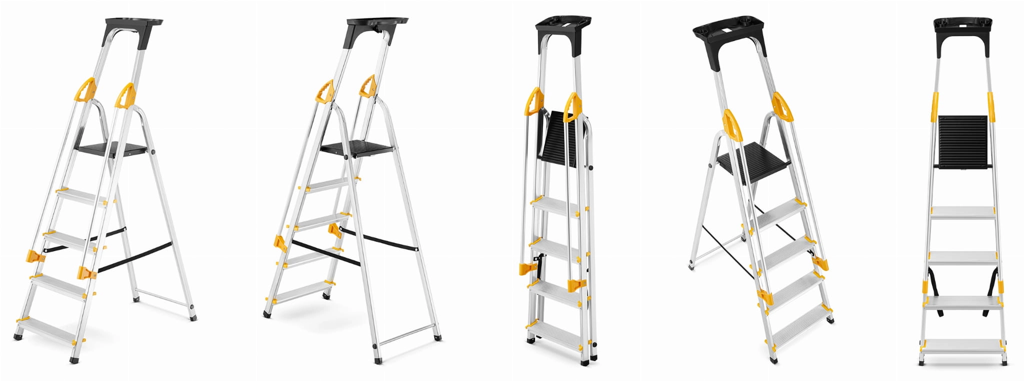 Brak miejsca na przechowywanie? Żaden problem! Dzięki lekkiej, składanej konstrukcji ta drabina zmieści się w każdym garażu, schowku, a nawet w bagażniku samochodu. Po złożeniu zajmuje minimum przestrzeni (grubość z poręczami to tylko 22 cm), co ułatwia jej transport i przechowywanie. Intuicyjny mechanizm składania sprawia, że jednym ruchem możesz ją schować i mieć zawsze pod ręką, gdy tylko będzie potrzebna.