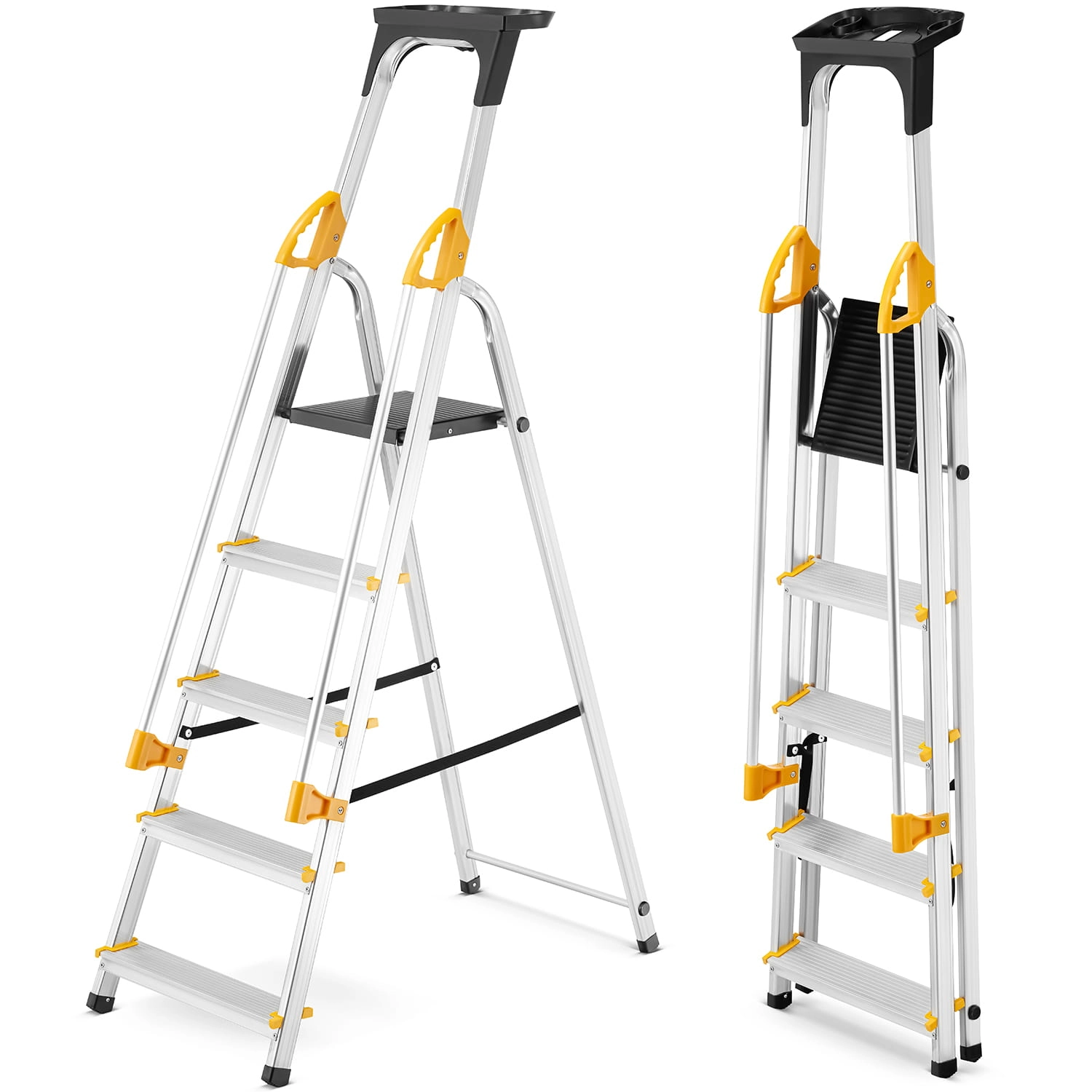 ✅ Aluminiowa konstrukcja: lekka, ale mocna – wykonana z aluminium, jest jednocześnie lekka i wytrzymała. Mocna konstrukcja sprawia, że nie musisz martwić się o wytrzymałość. Możesz swobodnie pracować, zabierając ze sobą narzędzia i materiały – drabina ma nośność 150 kg.