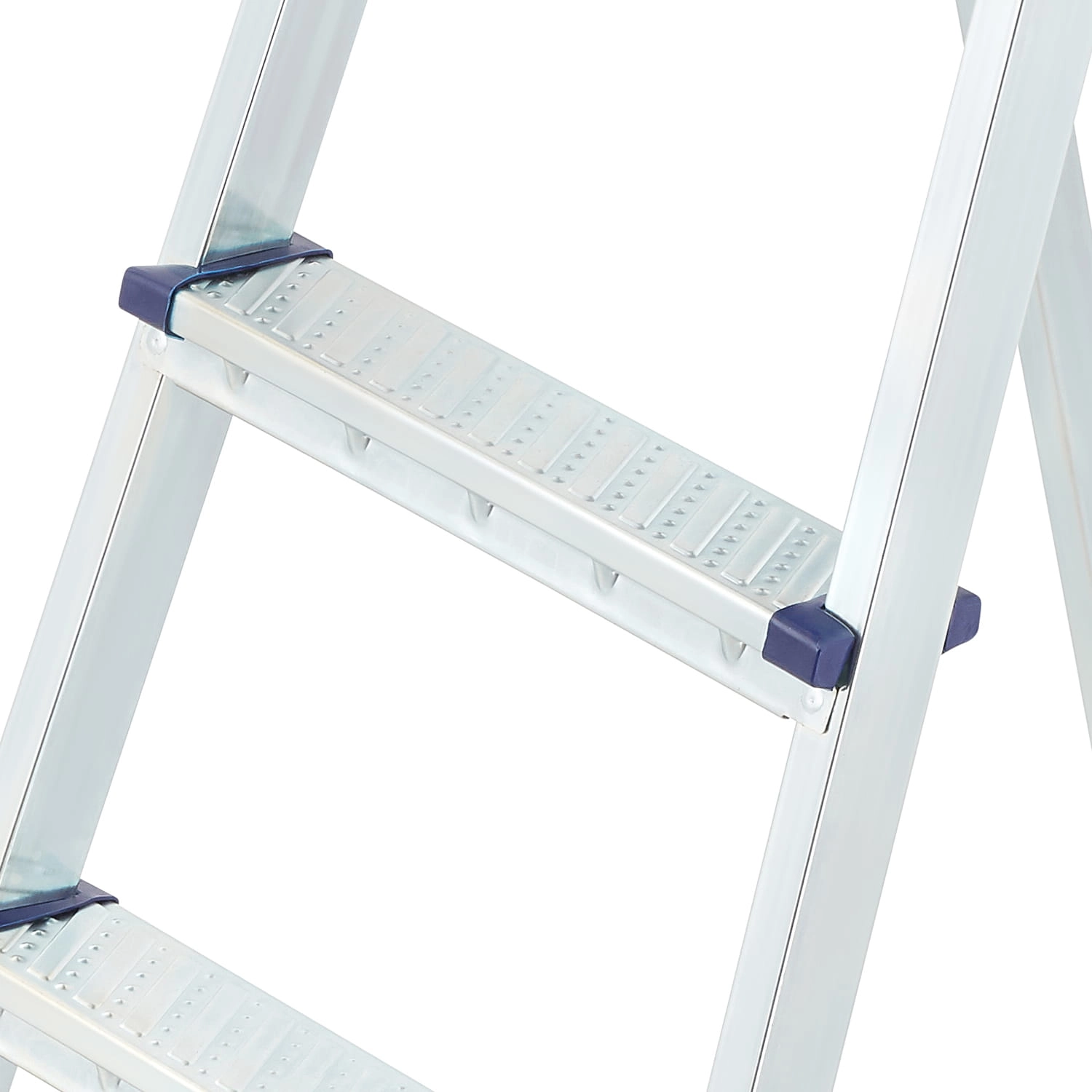 Ważnym elementem konstrukcyjnym naszych drabin są specjalnie tłoczone antypoślizgowe stopnie z lekkiego metalu. Dzięki specjalnym przetłoczeniom zachowują odpowiednią sztywność i antypoślizgowość. Stopnie są odporne na zarysowania. Dzięki powłoce cynkowej są również odporne na warunki atmosferyczne.