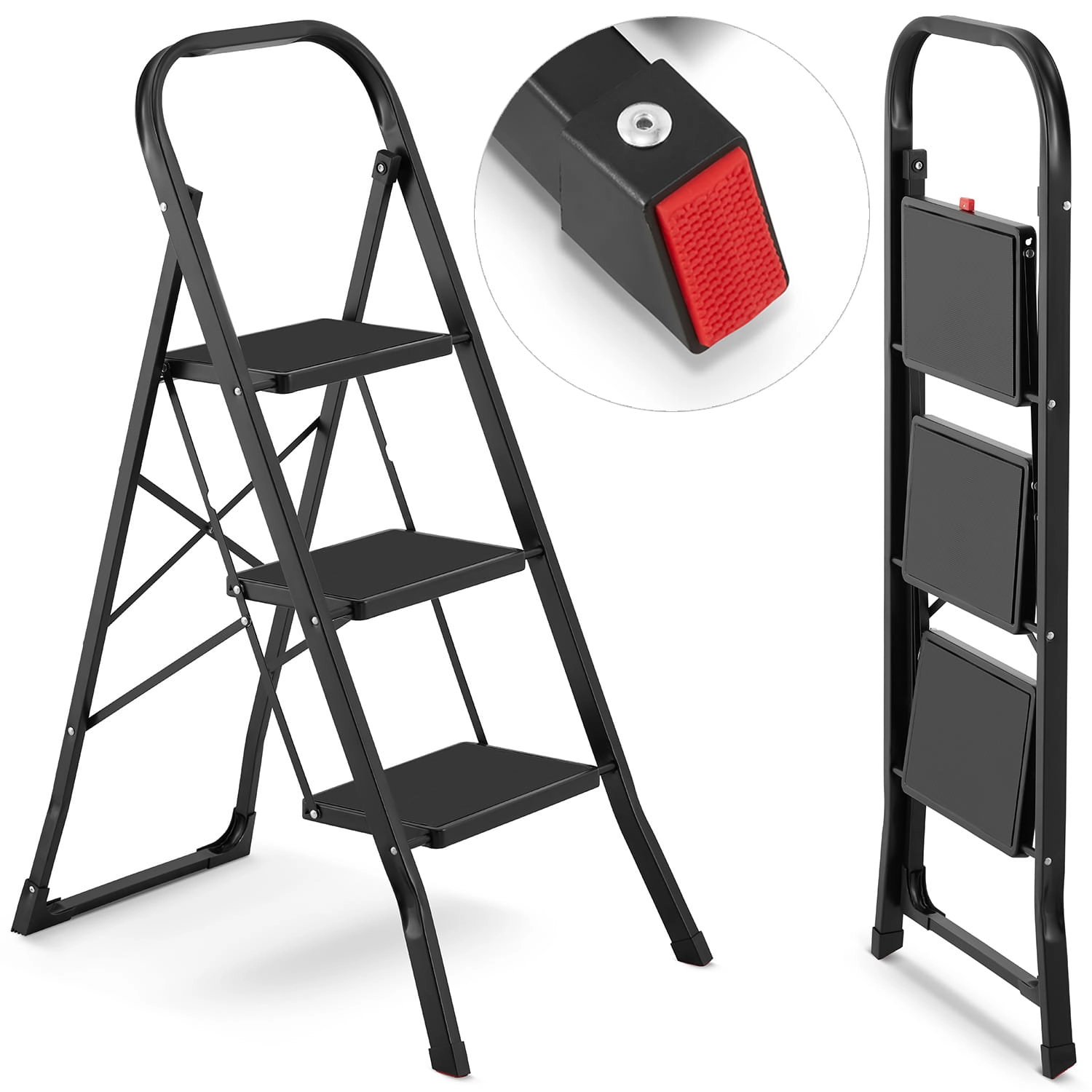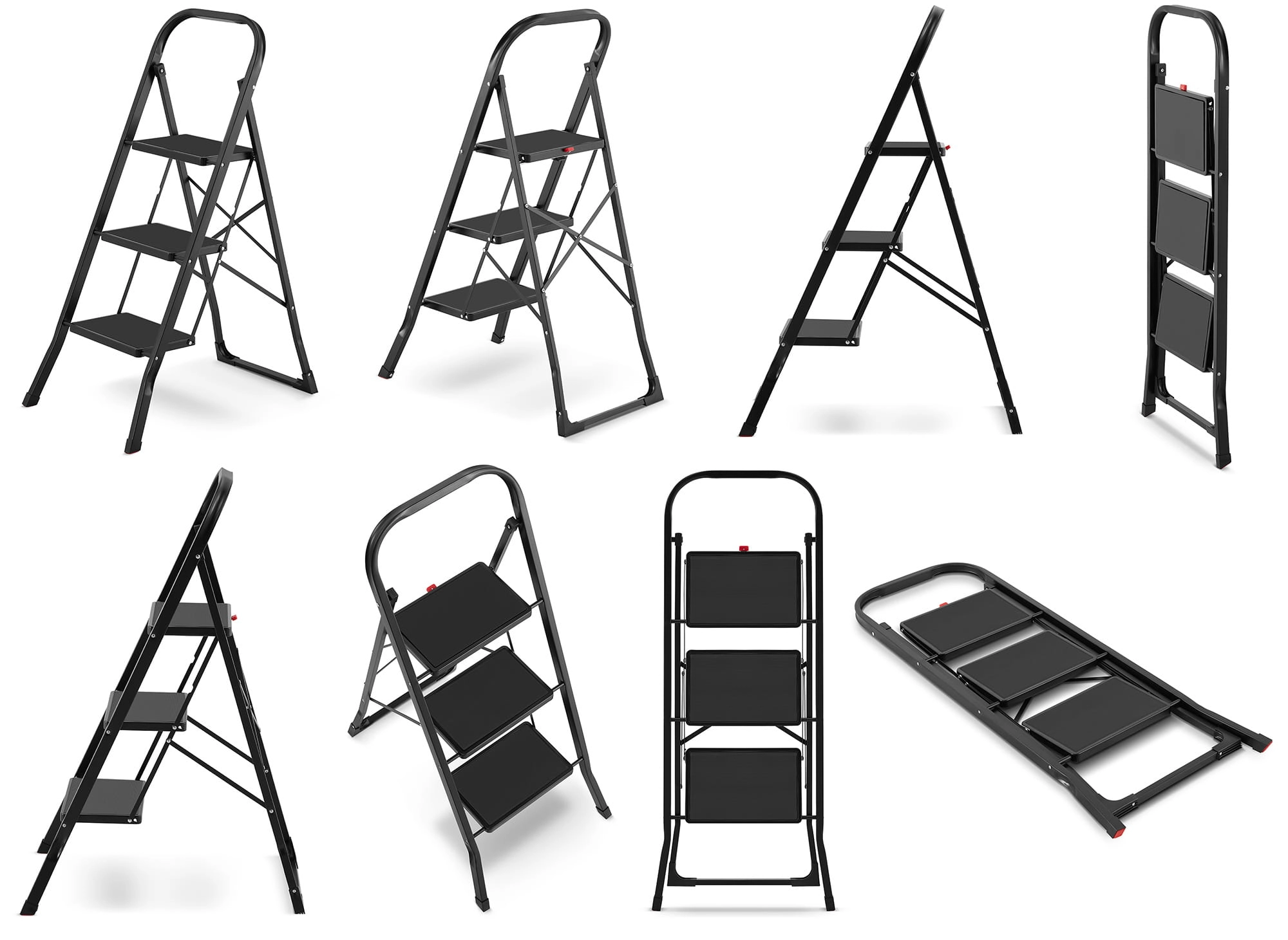 Drabina domowa stalowa składana schodki domowe HIGHER 3 stopnie kolor czarny