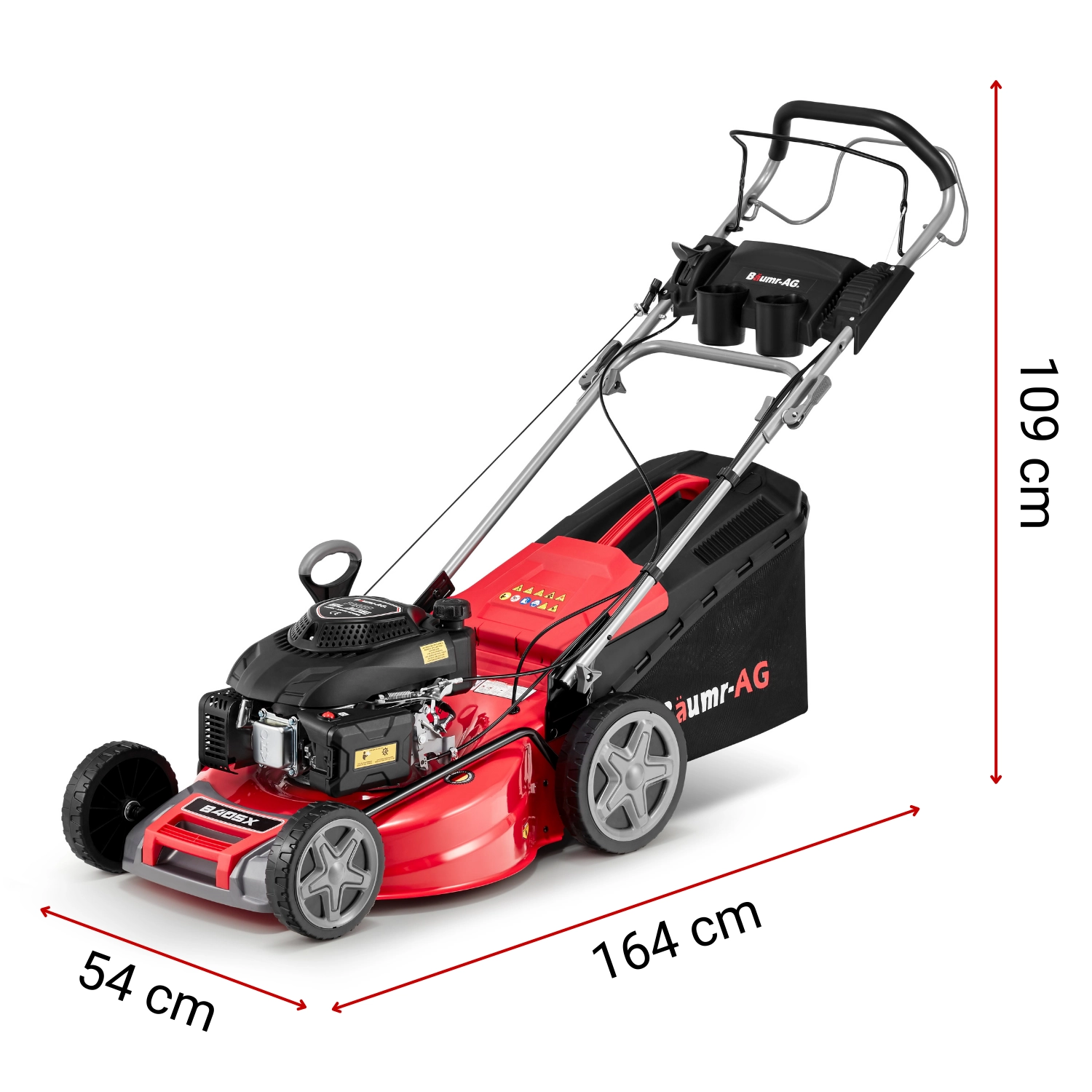 Sercem kosiarki Bäumr-AG 840SX jest zaawansowany silnik czterosuwowy, który zapewnia stabilną moc niezbędną do pracy w wymagających warunkach ogrodowych. Jednostka ta pracuje na czystej, świeżej benzynie bezołowiowej, co eliminuje konieczność kłopotliwego przygotowywania mieszanki paliwowo-olejowej.