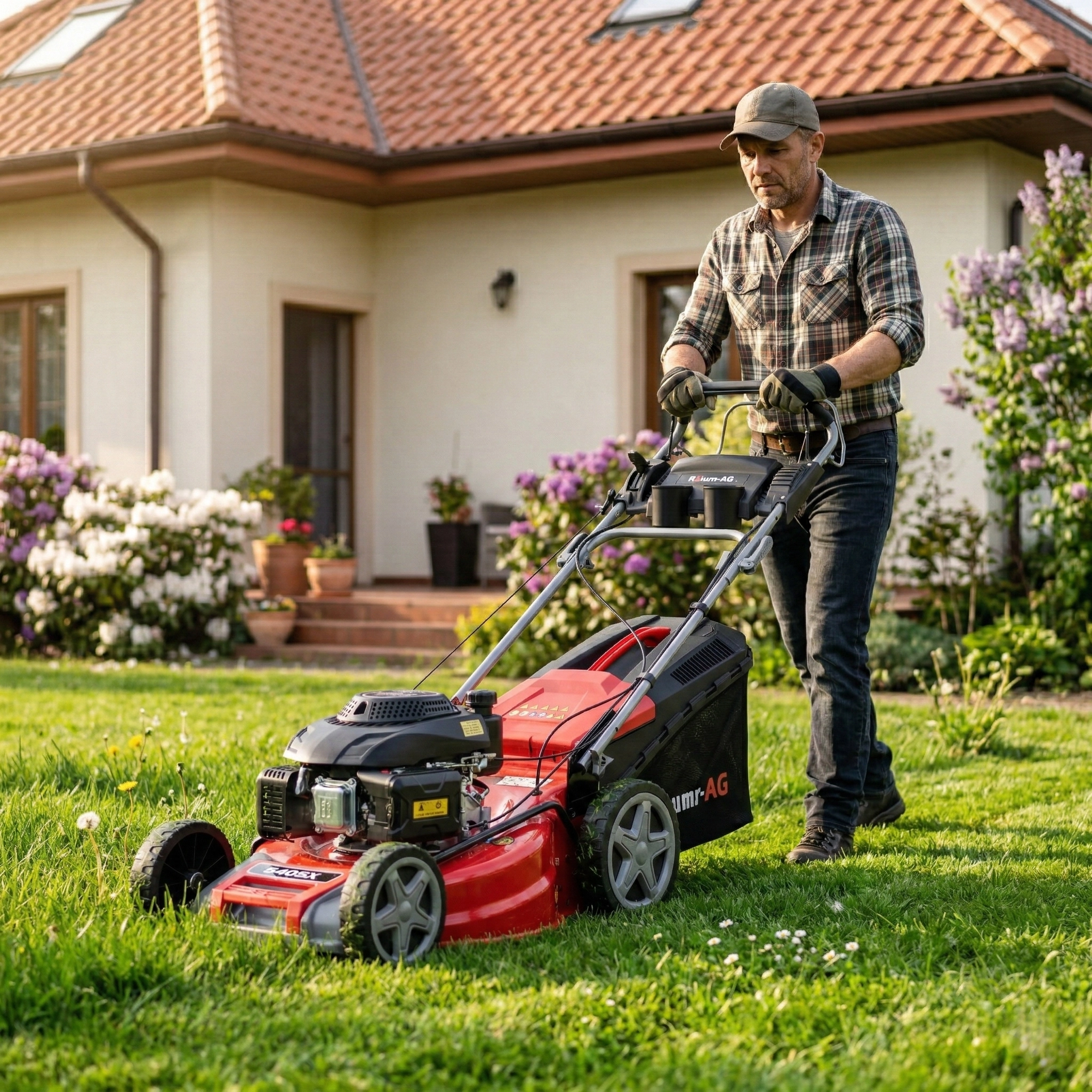 Estetyczny i nowoczesny design kosiarki sprawia, że praca w ogrodzie staje się przyjemnością, a sprzęt prezentuje się profesjonalnie.