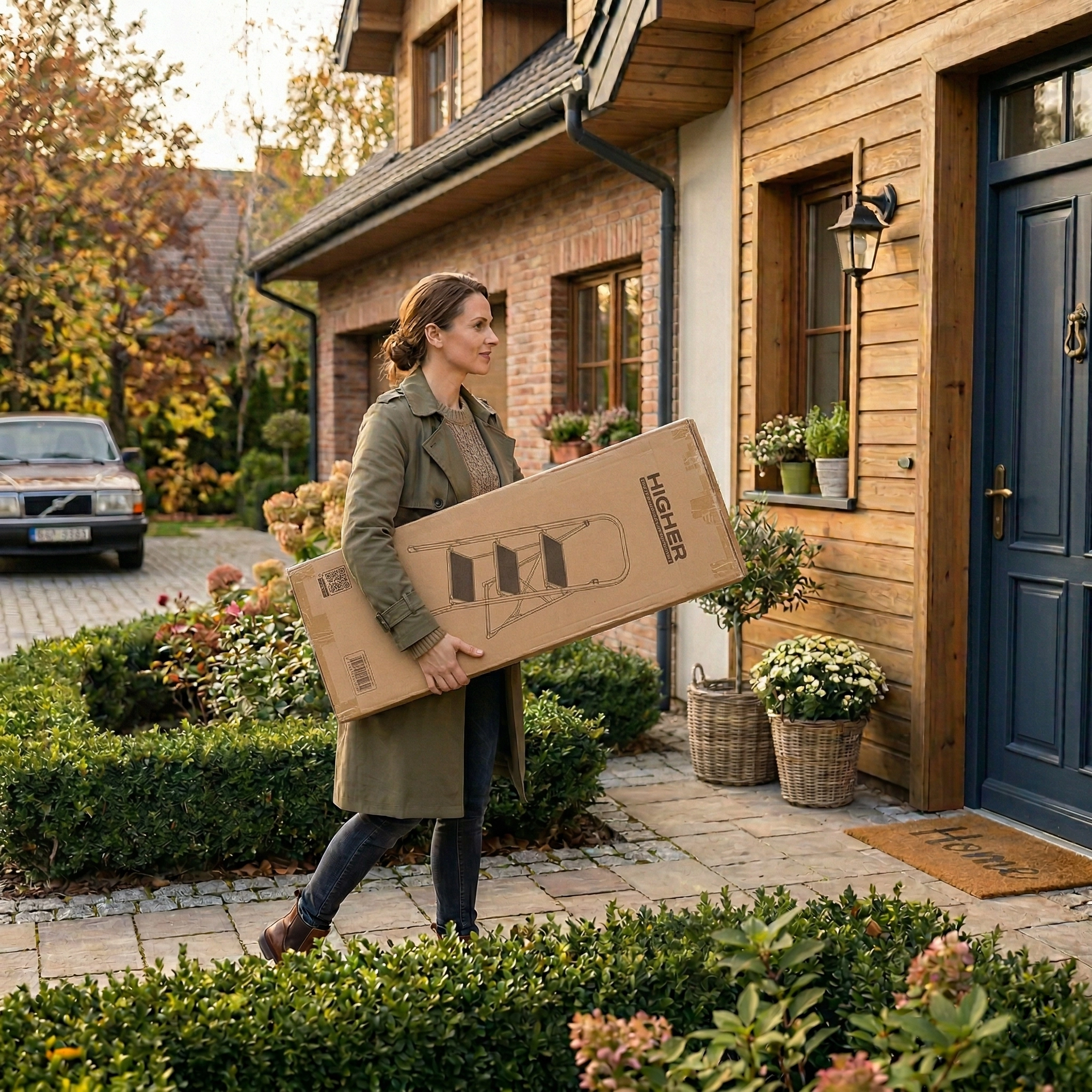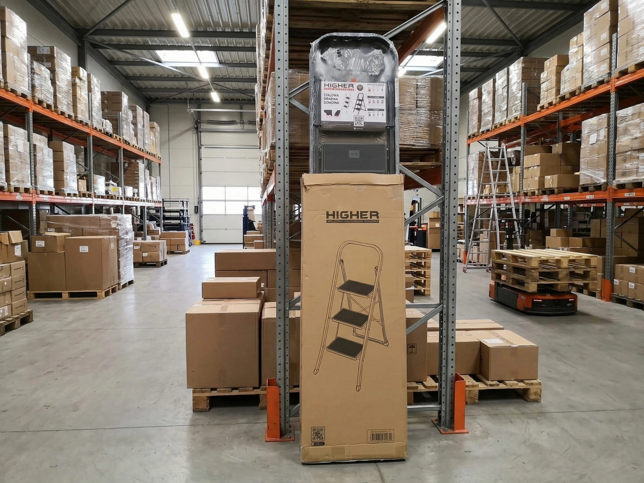 3️⃣ Ułatwiona logistyka i chwyt – sztywny karton o regularnych kształtach jest znacznie łatwiejszy do złapania i przeniesienia niż śliska drabina owinięta jedynie cienką folią.