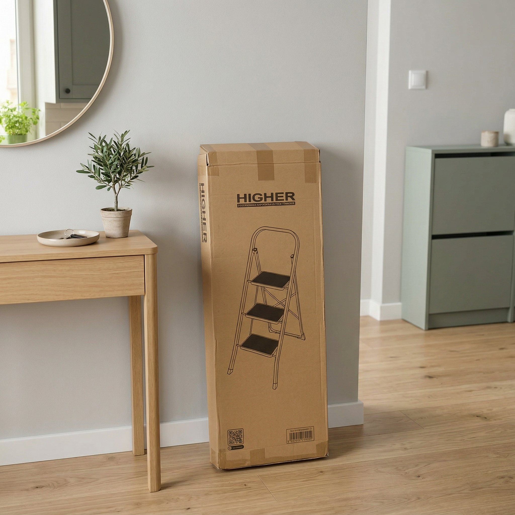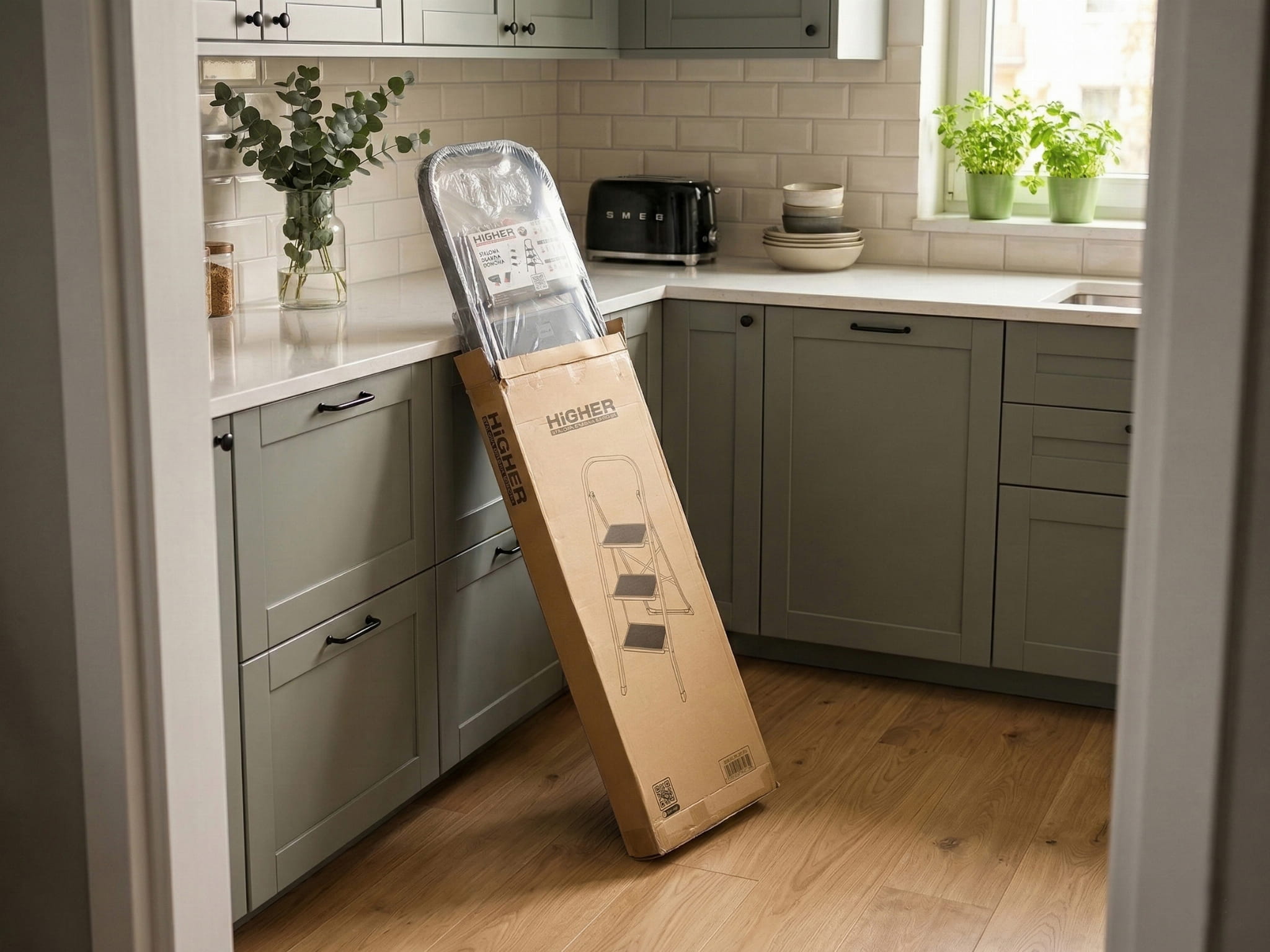 4️⃣ Czystość w Twoim domu – Opakowanie skutecznie zatrzymuje kurz oraz ewentualne zabrudzenia techniczne, więc po wyjęciu z paczki drabina jest od razu gotowa do użycia w salonie czy kuchni.