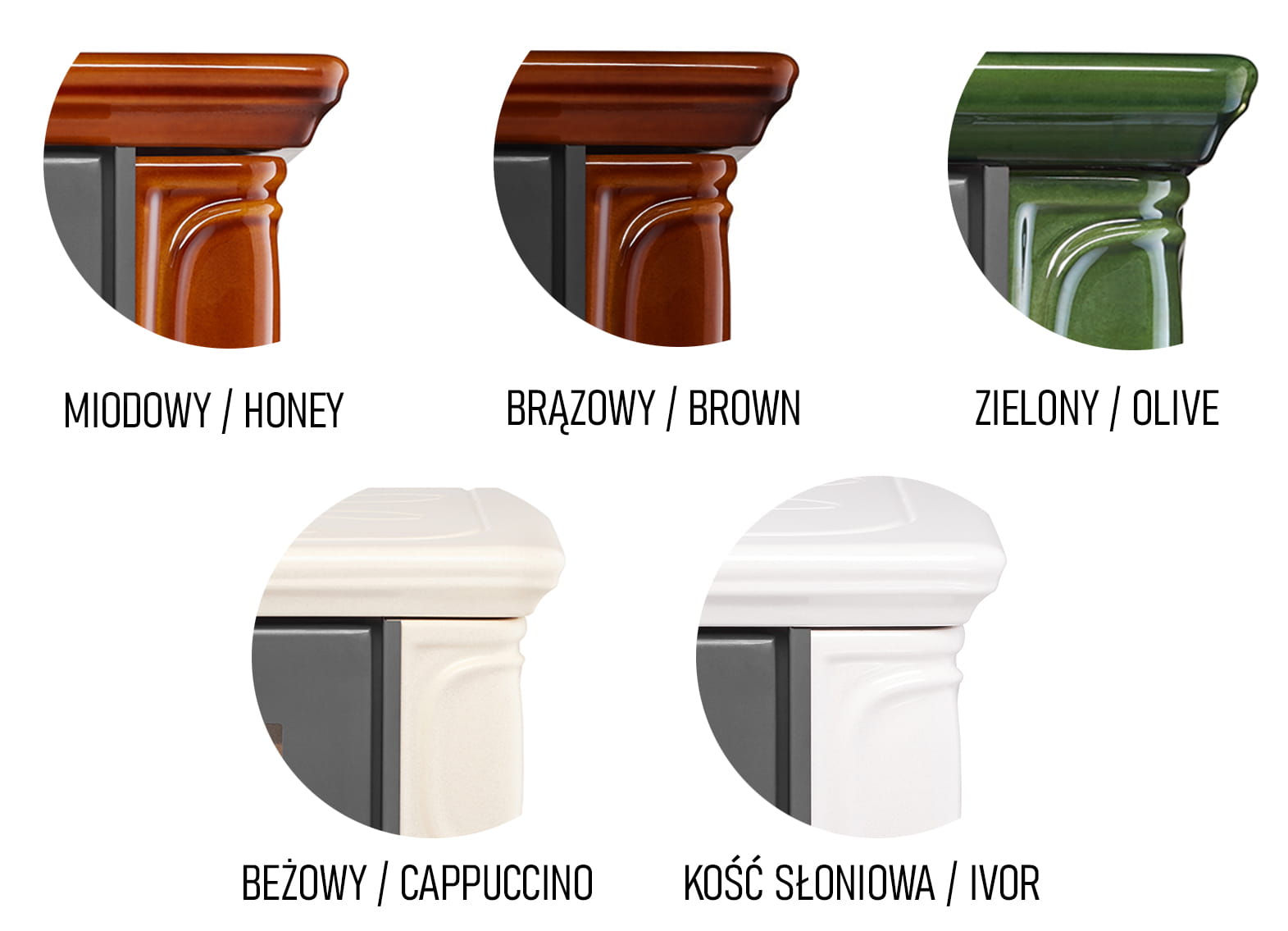 - Dostępne wersje: 5 modeli - Cappucino / Brown / Honey / Ivory / Olive