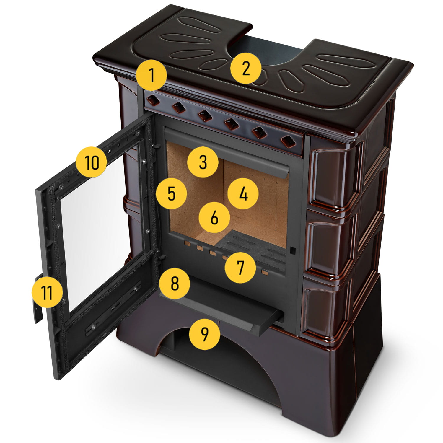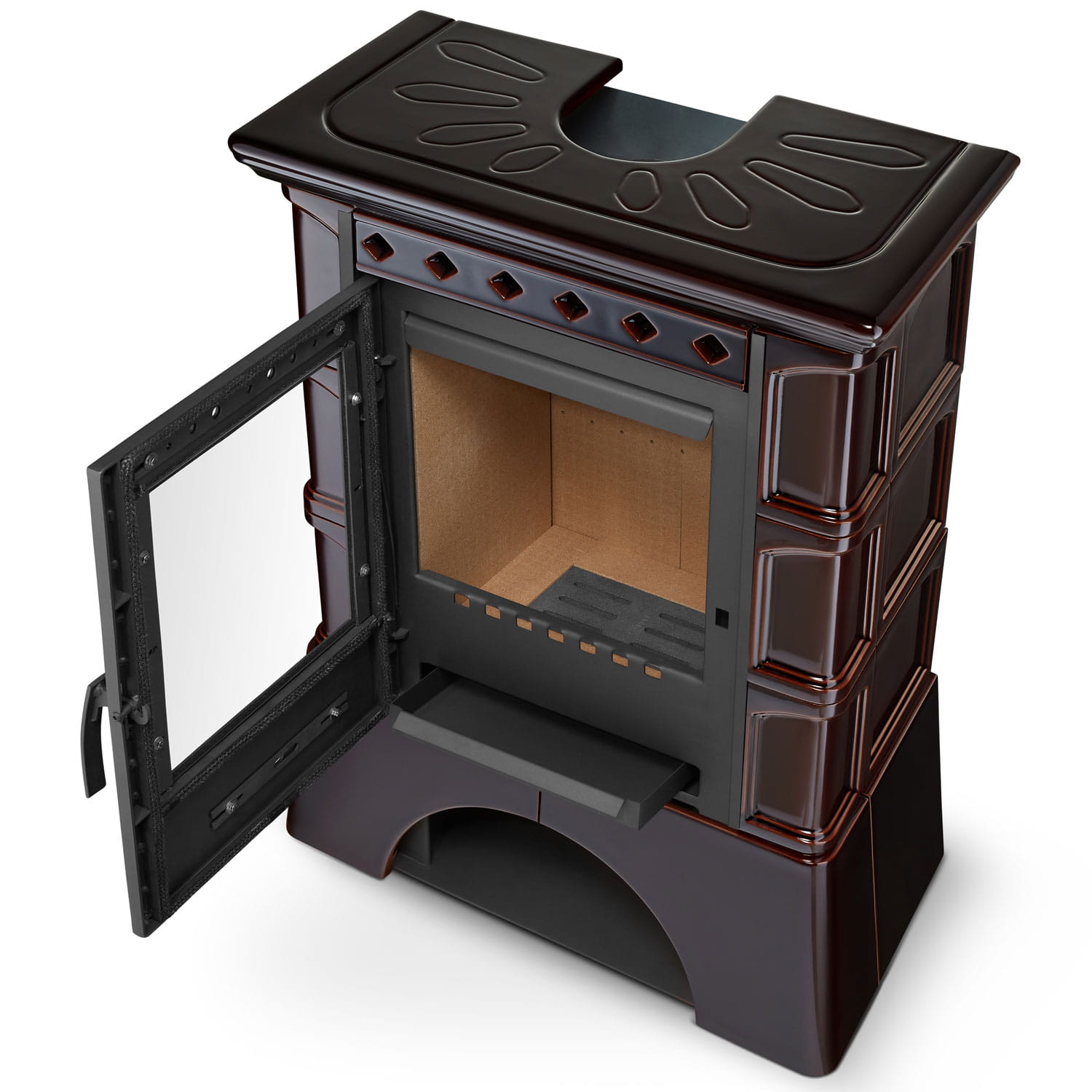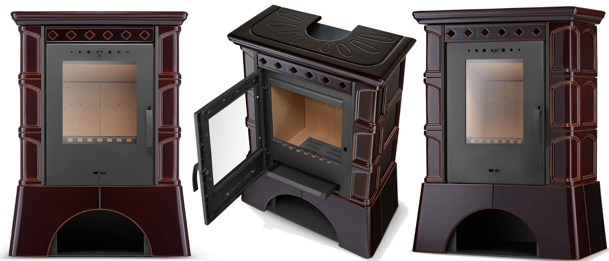 Kafle ceramiczne świetnie kumulują i oddają ciepło oraz podkreślają piękno kominków a dzięki szkliwionej powierzchni są niezwykle łatwe w utrzymaniu czystości. Niepowtarzalny wygląd naszego kominka: w szczególności jego kształt, bryła oraz kafle jest efektem prac oraz ciągłych udoskonaleń zespołu naszych projektantów oraz technologów.