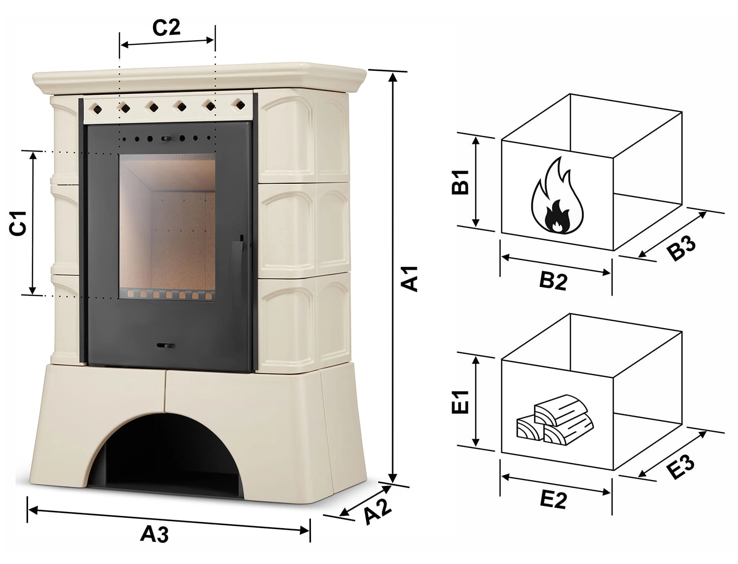 - Maksymalne spalanie drewna: 1,5 kg / godzinę