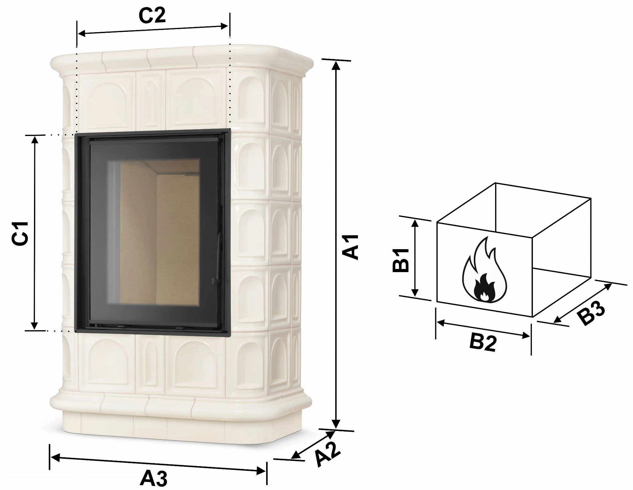 - wysokość paleniska (wymiar B1): 40,0 cm