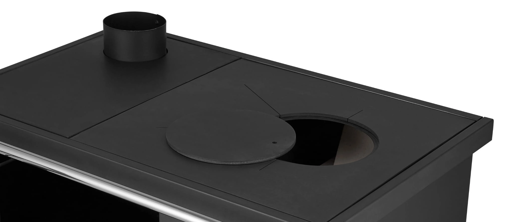 Tradycyjny kominek to urządzenie grzewcze, które zgodnie ze swoim przeznaczeniem pełni rolę ogrzewacza dla pomieszczenia bądź kilku pomieszczeń. Wykorzystując paliwo w procesie spalania, kominek wytwarza energię cieplną, którą następnie przekazuje do pomieszczeń. Aby jeszcze bardziej i w pełni wykorzystać wytwarzane ciepło w komorze spalania, został skonstruowany piec z płytą grzewczą. Taki rodzaj kominka często nazywany jest mianem piecokuchni lub kuchni węglowej. Dzięki płycie grzewczej umieszczonej na wierzchu kominka można gotować, podgrzewać bądź utrzymywać ciepło przyrządzanych potraw. Jest to doskonałe rozwiązanie, ponieważ taki kominek może w zupełności zastąpić kuchenkę gazową, elektryczną czy indukcyjną albo służyć jako awaryjne źródło ciepła i gotowania. Piecokuchnia nie wymaga ani prądu, ani gazu - jedynie podłączenia do systemu odprowadzania spalin.