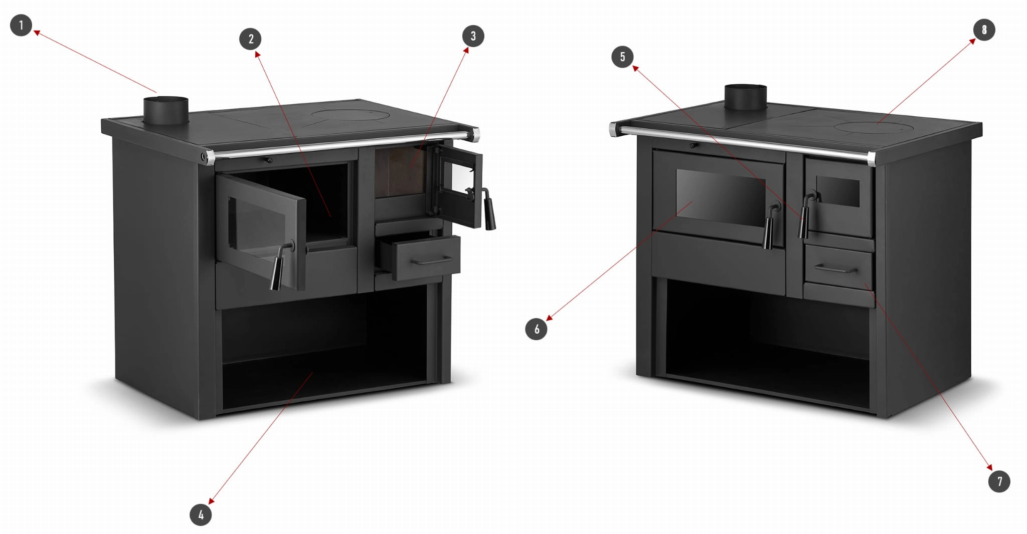 Kuchnia węglowa TERMO 8 E to odpowiedź na zmieniające się uwarunkowania ekonomiczne i gospodarcze. Dzięki kuchni TERMO możesz jednocześnie ogrzewać pomieszczenie, ogrzewać wodę w układzie c.o., gotować potrawy i korzystać z piekarnika - wszystko to w jednym urządzeniu grzewczym!