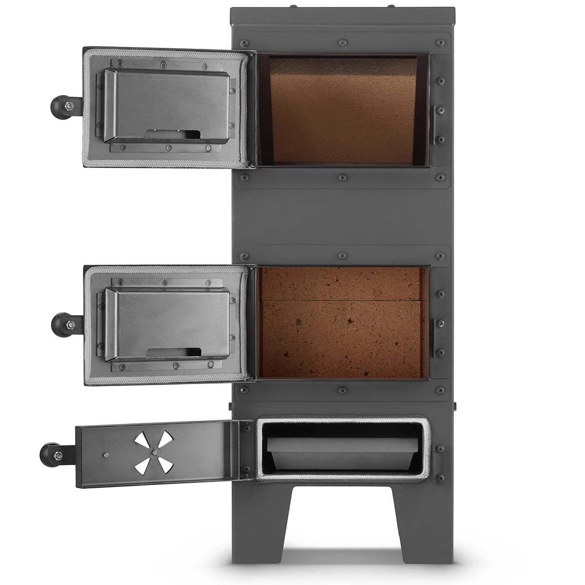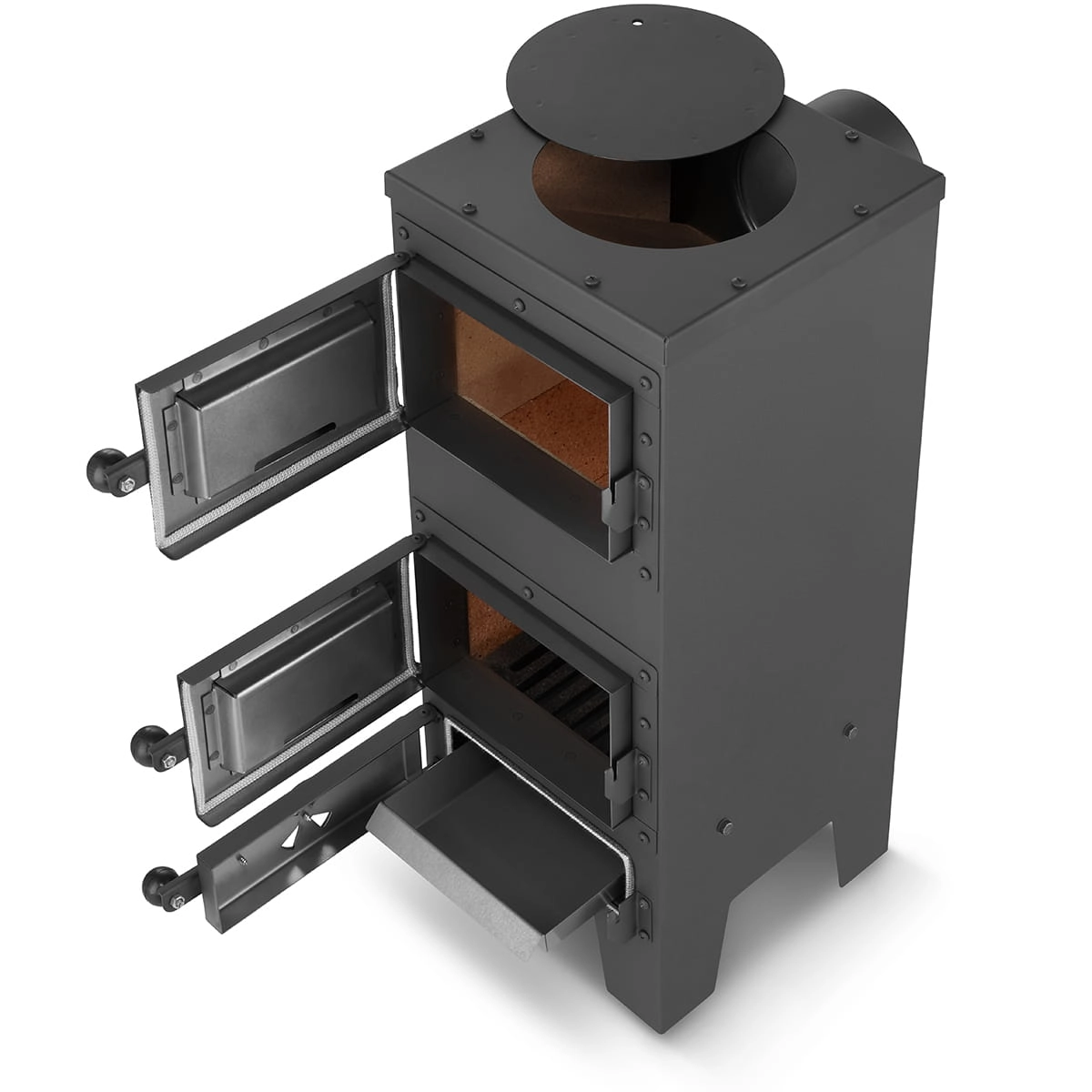 ✅ podwójne ścianki stalowe w drzwiczkach dodatkowo zabezpieczające przed działaniem ognia