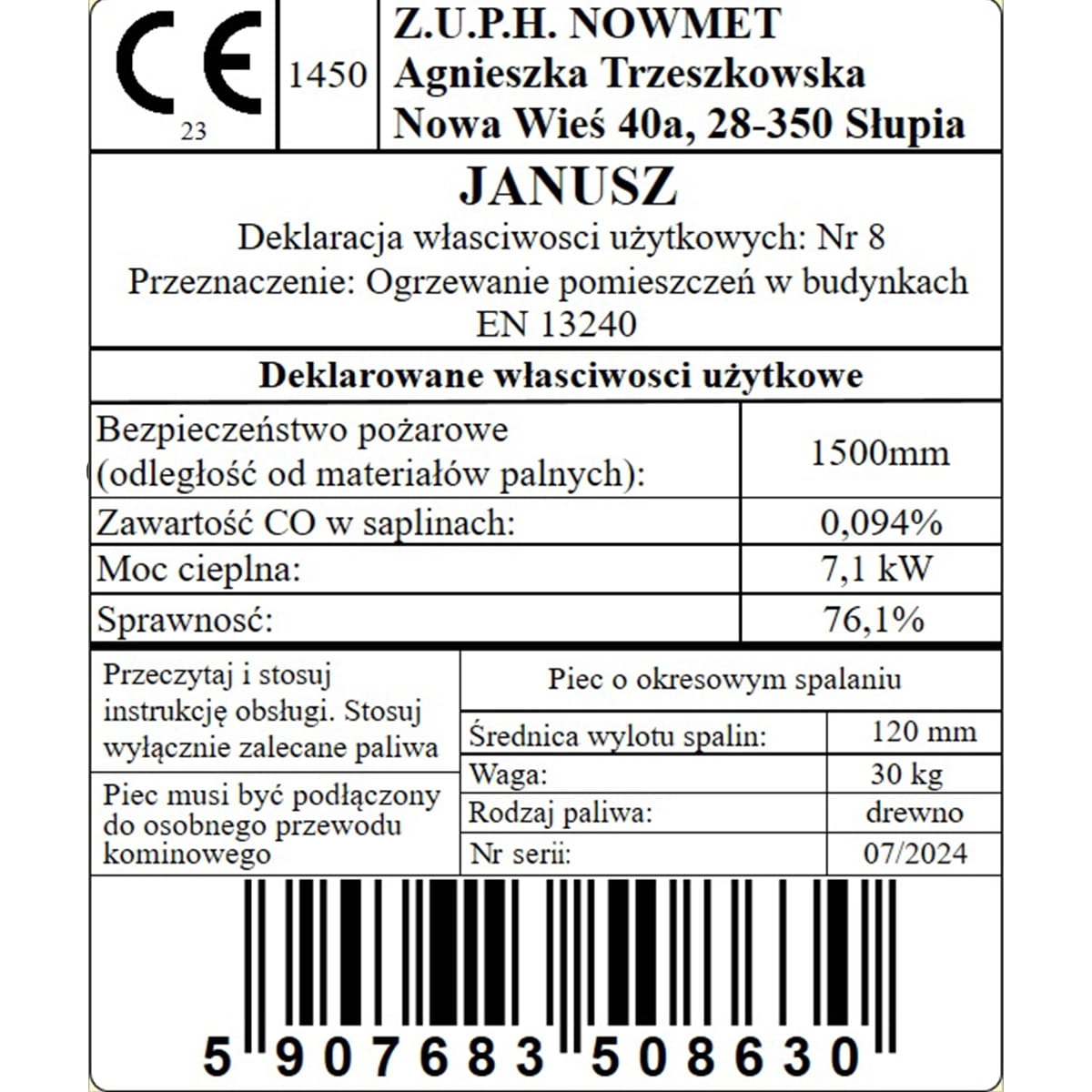 - nazwa pieca / kominka: JANUSZ