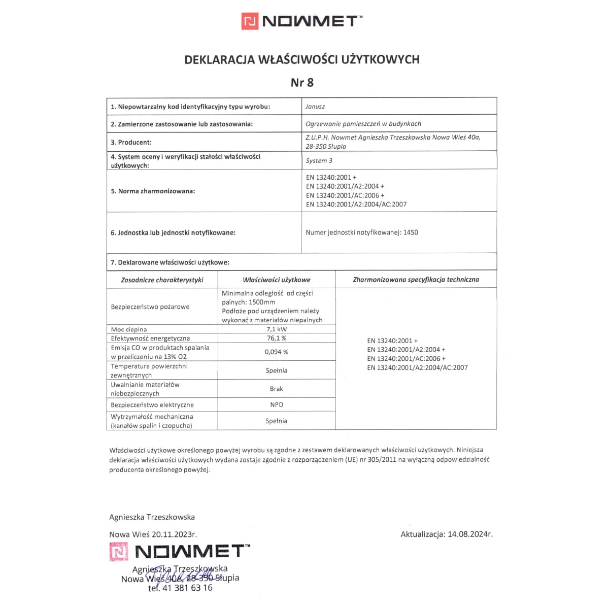 Deklaracja właściwości użytkowych