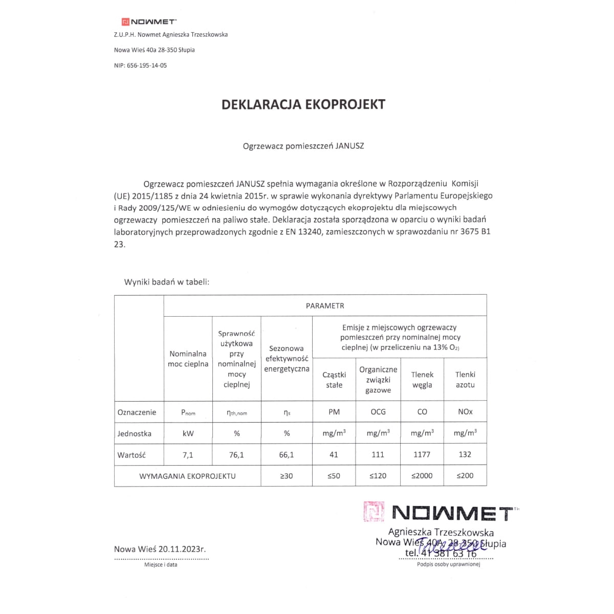Nasz piec kominek stalowy JANUSZ posiada pełną dokumentację techniczną oraz spełnia wymogi EKOPROJEKT 2022. Jest przebadanym piecem przez Instytut Nafty i Gazu w Krakowie i spełnia wszystkie deklarowane parametry a co najważniejsze - wymogi EKOPROJEKT 2022. Zgodnie z aktualnym prawem może być stosowany jako ogrzewacz do pomieszczeń z uwagi na spełnianie norm oraz wymagań EKOPROJEKTU 2022. Znalazłeś taniej - upewnij się, że porównywany produkt posiada wymagane prawem dokumenty. Dołączamy do porównania: Orzeczenie do sprawozdania z badań oferowanego pieca, które potwierdzają, że spełnia on wymogi Ekoprojekt 2022.