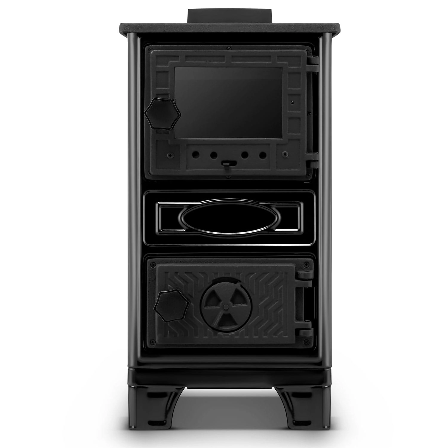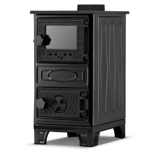 - Widok ognia: szyba w drzwiczkach pozwala obserwować płomienie, tworząc przytulną, ciepłą atmosferę. Kompaktowy rozmiar, duża funkcjonalność: mimo niewielkich wymiarów piec daje przyjemne ciepło i wydajność, której oczekujesz od większych modeli.