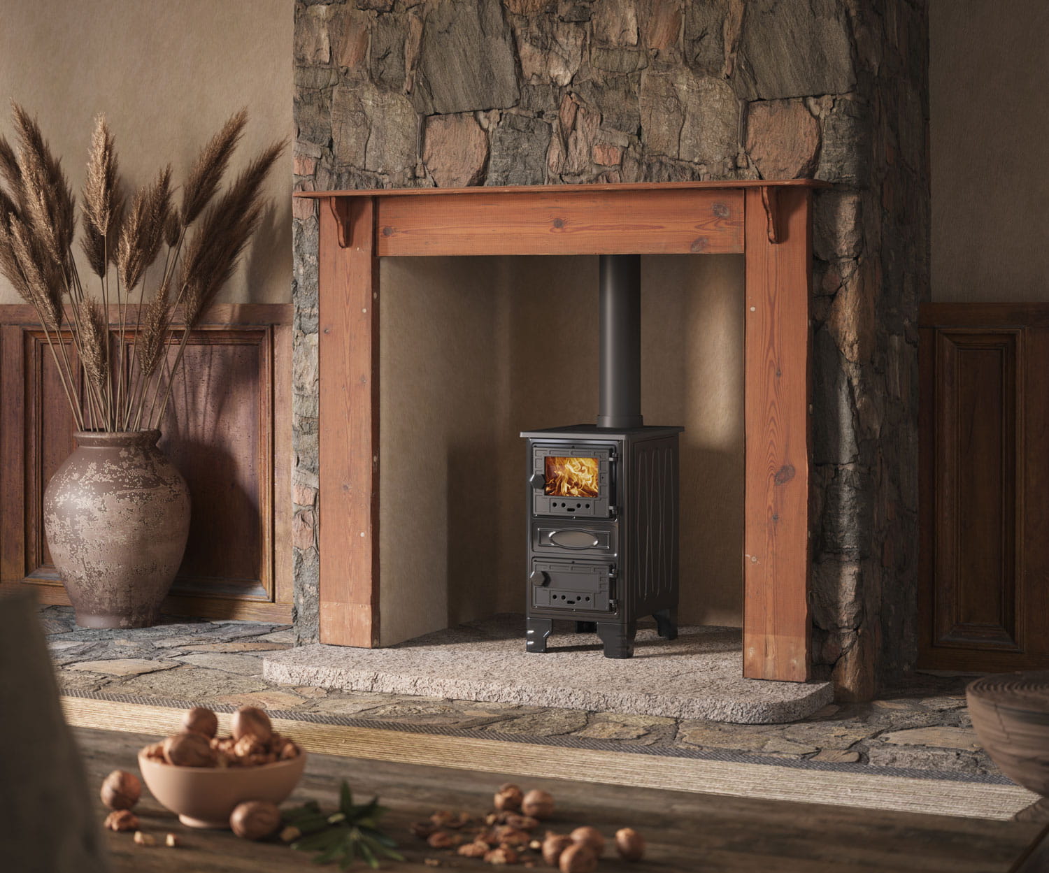 W środku znajduje się specjalna przegroda, która zatrzymuje ciepło tam, gdzie powinno być – w Twoim domu. Dzięki temu z jednej porcji drewna wyciągniesz więcej energii, a temperatura nie ucieka bez sensu do komina. Mało tego, górna płyta działa jak fajerka, dzięki czemu możesz na niej zagotować wodę czy podgrzać posiłek, kiedy ogień już się pali. To rozwiązanie, które czuć w portfelu i w przytulnym cieple, jakie wypełnia pomieszczenie.