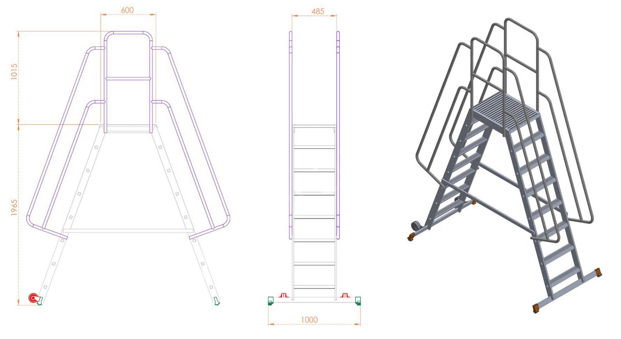 - wysokość od podestu do barierek: 1,015 m