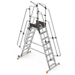Schody magazynowe dwustronne 7 stopnie + podest mostek z wejściem dwustronnym
