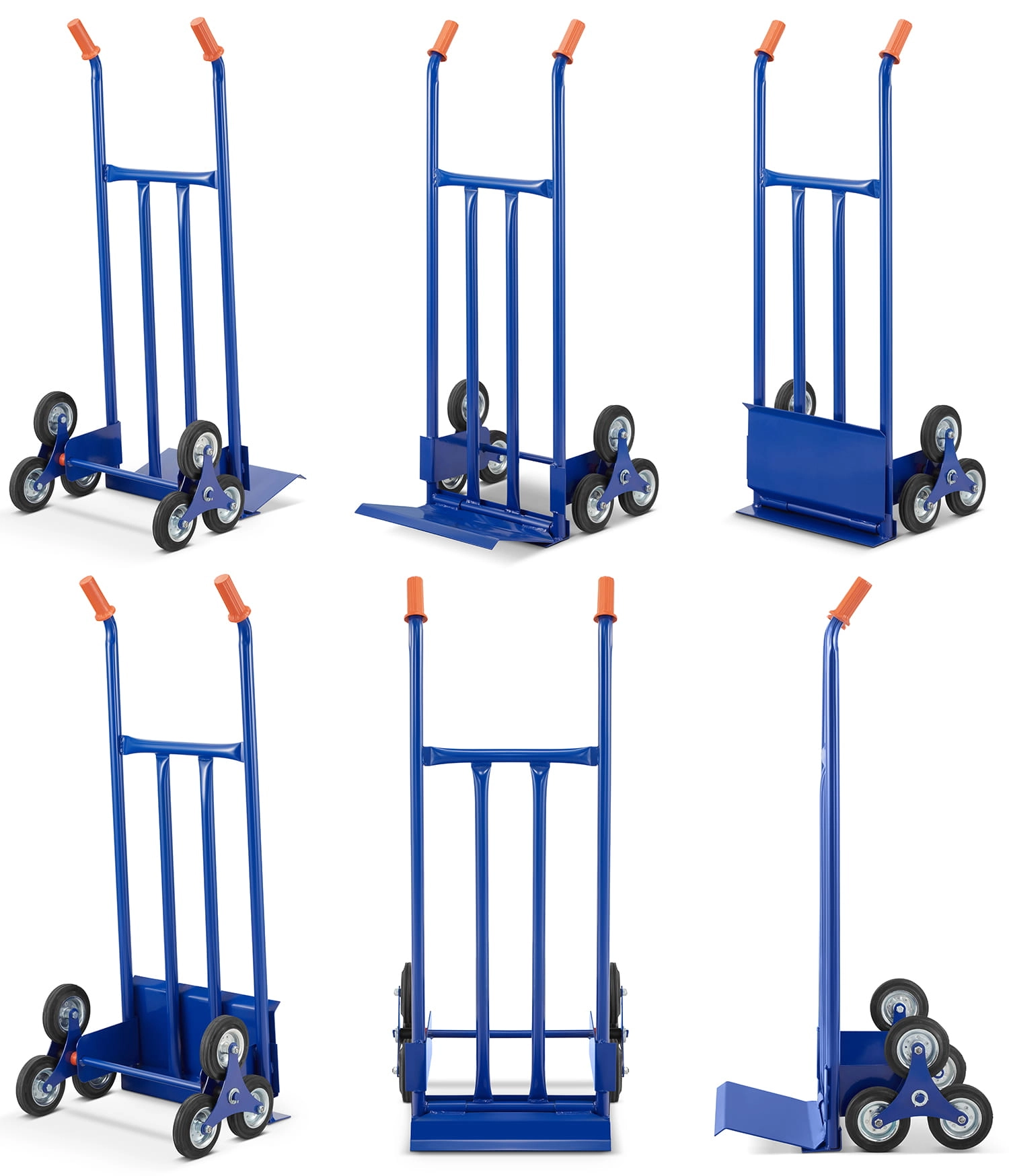 Mocny, trwały, wygodny, spawany wózek transportowy, który dzięki mechanizmowi 3-kołowemu doskonale nadaje się do transportu ładunków po schodach. Zastosowanie w całości konstrukcji spawanej - bez żadnych wysuwanych i chowanych elementów, zapewnia odpowiednią wytrzymałość i stabilność, która jest niezwykle istotna przy transporcie cięższych ładunków po schodach. Tylko w pełni spawana konstrukcja zapewnia odpowiednią wytrzymałość i trwałość. W naszym wózku użyte są nieprzebijalne koła pełne z gumy na stalowej feldze, które zapewniają zawsze gotowość do pracy. Dzięki zastosowaniu składanej platformy do przewożenia ładunku (w formie pełnej blachy z odpowiednim przetłoczeniem wzmacniającym), wózek po złożeniu zajmuje mniej miejsca co ułatwia jego przewożenie i przechowywanie.