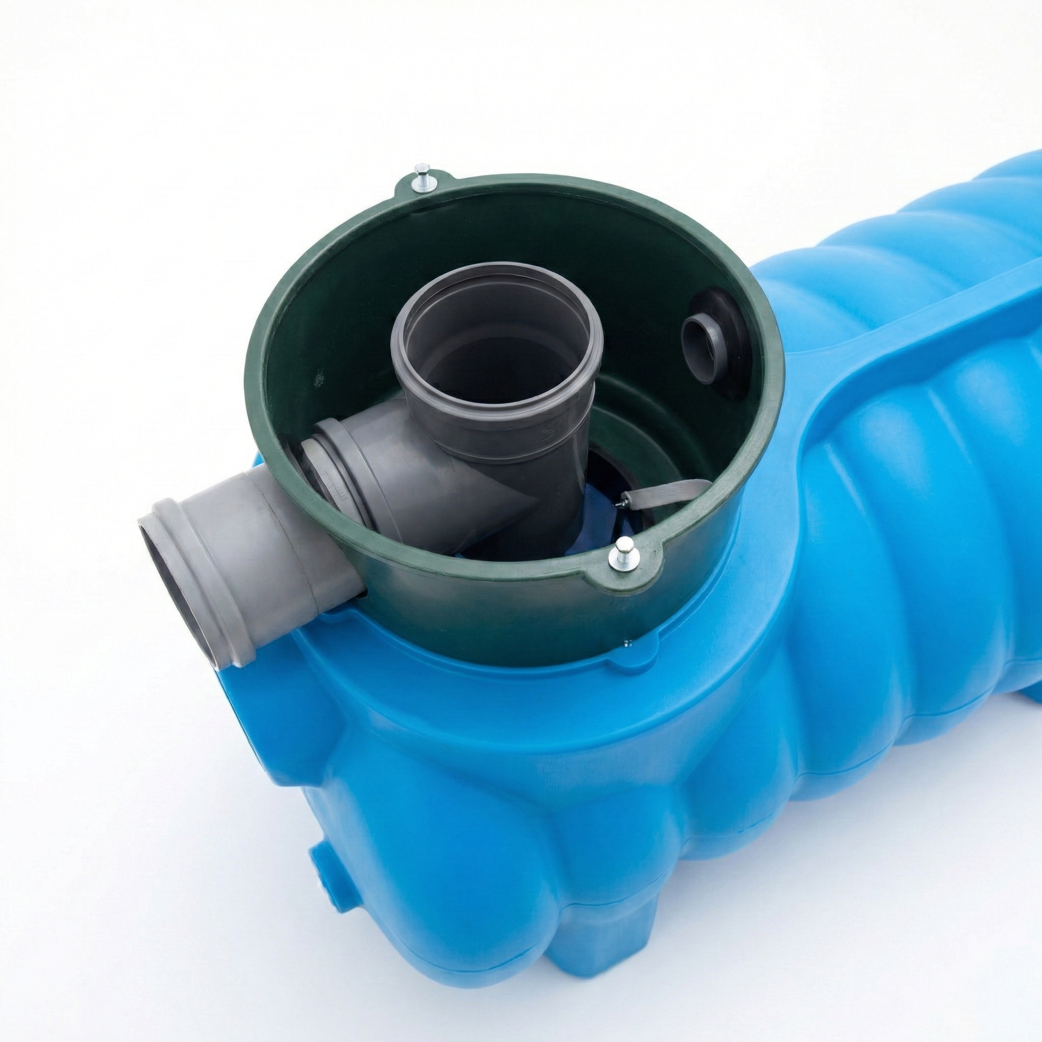 Praca z tym zbiornikiem to czysta przyjemność, głównie ze względu na jego przemyślaną ergonomię i możliwości rozbudowy. Standardowe przyłącza o średnicy 110 mm pozwalają na błyskawiczne wpięcie się w system rynnowy, a duży otwór rewizyjny ułatwia okresowe przeglądy.