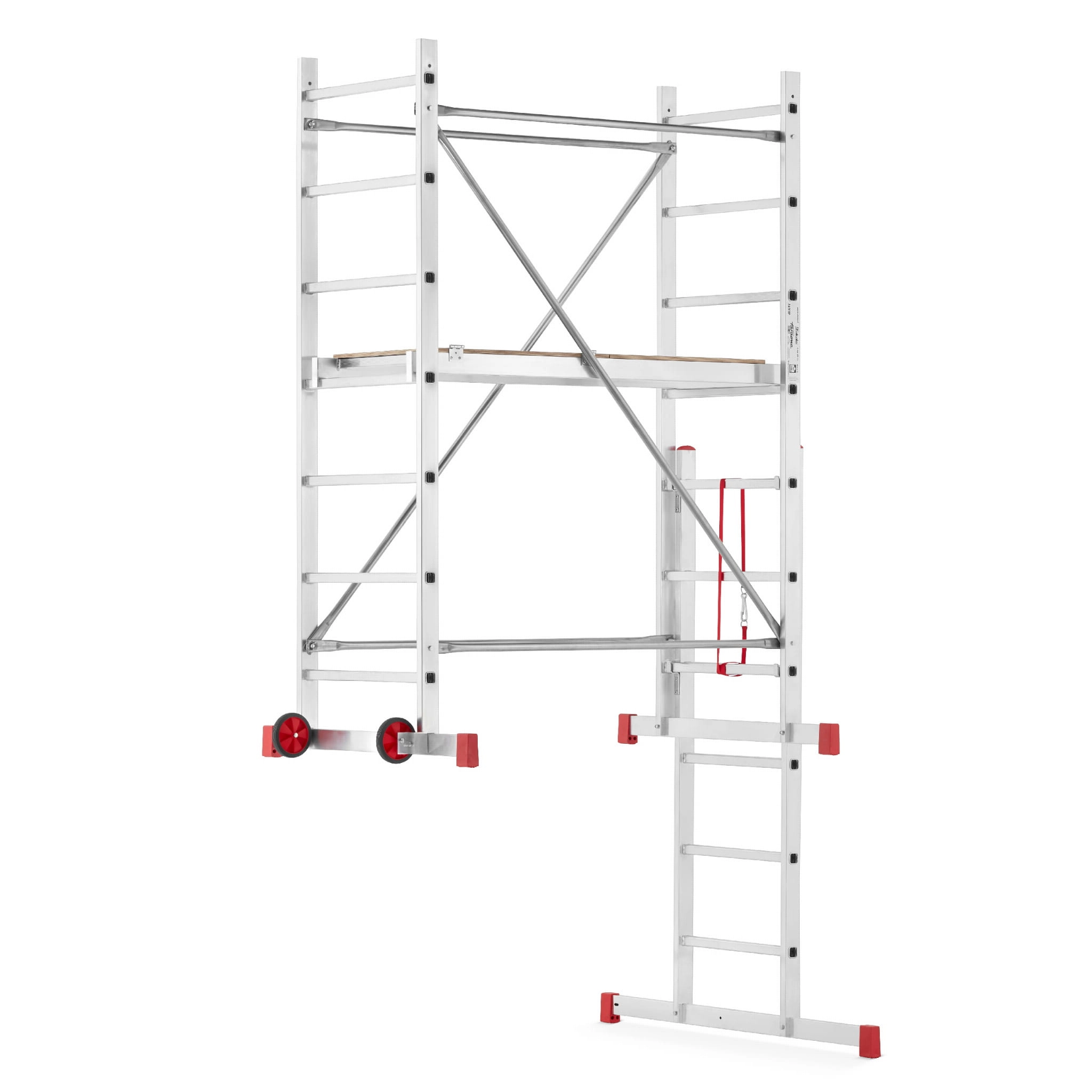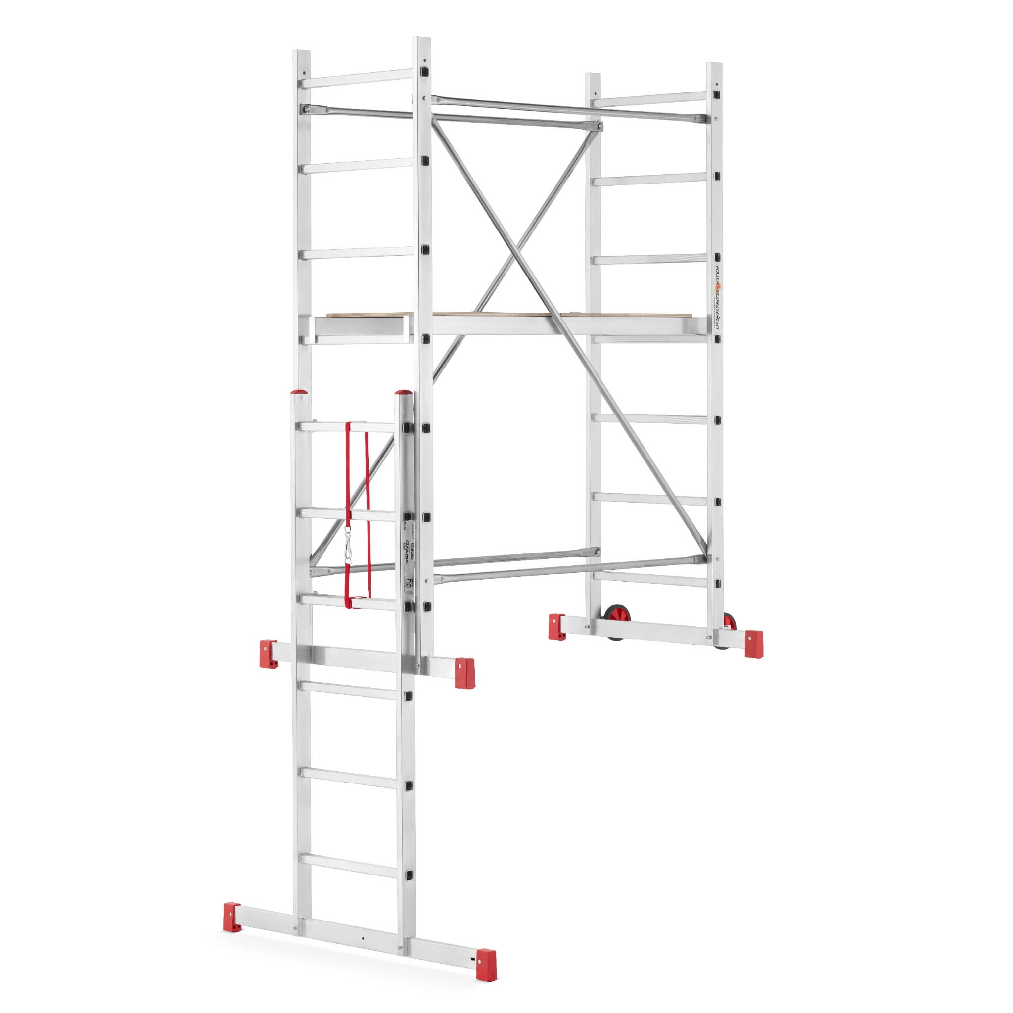 - Zgodność z normą EN 1004: możliwa do osiągnięcia po rozbudowie i dokupieniu dodatkowych elementów: burty, łącznik kotwiący, podpory