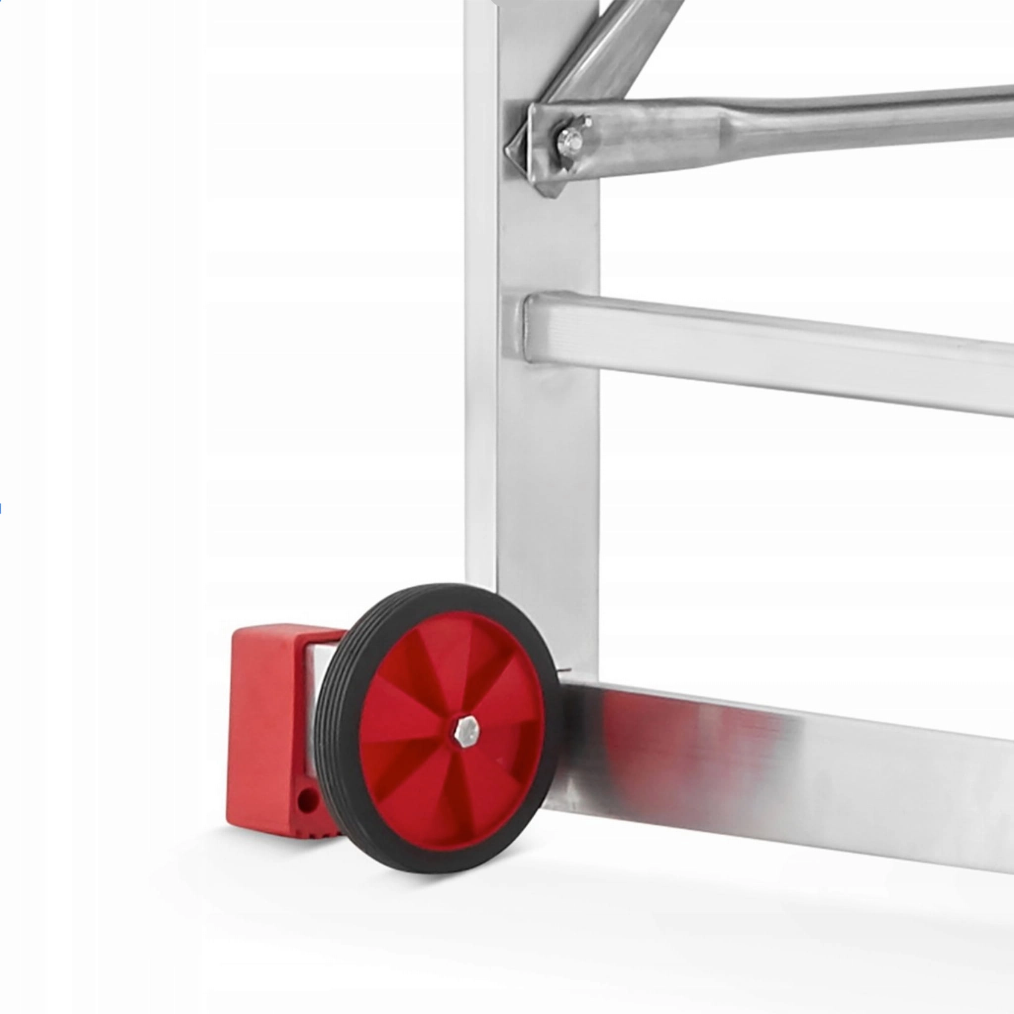 Nie musisz już martwić się o dźwiganie ani rozmontowywanie całej konstrukcji, by ją przesunąć! Rusztowanie AK-200 zostało wyposażone w solidne kółka wykonane z wytrzymałego tworzywa sztucznego, dzięki którym przesuwanie staje się wyjątkowo łatwe. Transport rusztowania jest bardzo prosty. Wystarczy podnieść konstrukcję z jednej strony (tam gdzie nie ma rolek). Wówczas rusztowanie „wskakuje” na rolki, co umożliwia jego łatwe przesuwanie. Dzięki lekkiej konstrukcji jedna osoba poradzi sobie z tym zadaniem bez potrzeby używania dużej siły. To rozwiązanie zapewnia wygodę i oszczędność czasu podczas transportu. Same koła jezdne są wykonane z tworzywa sztucznego zaś część bieżnikowa z podgumowanego materiału zapewniającego bezpieczne przesuwanie. Średnica kół wynosi aż 13 cm, więc bez problemu pokonają one drobne przeszkody.