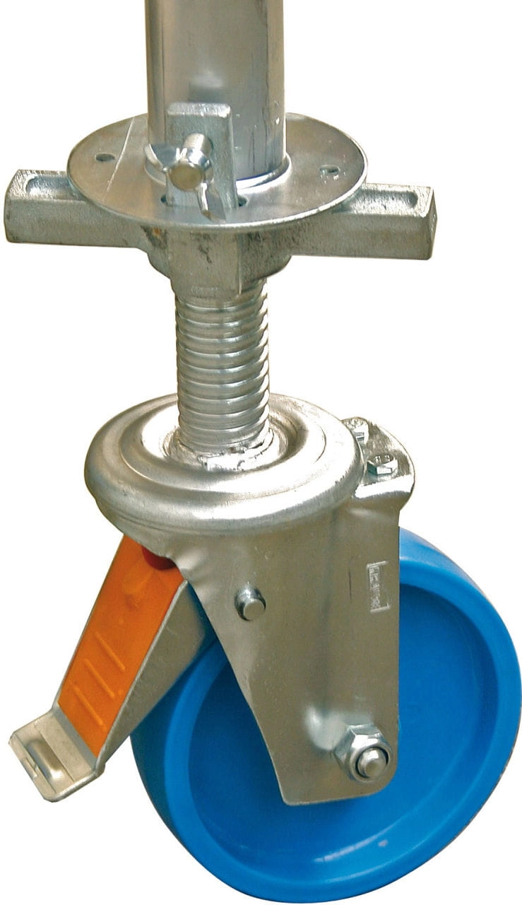 Pomost jezdny wyposażony jest w 4 rolki jezdne 125 mm z hamulcem.