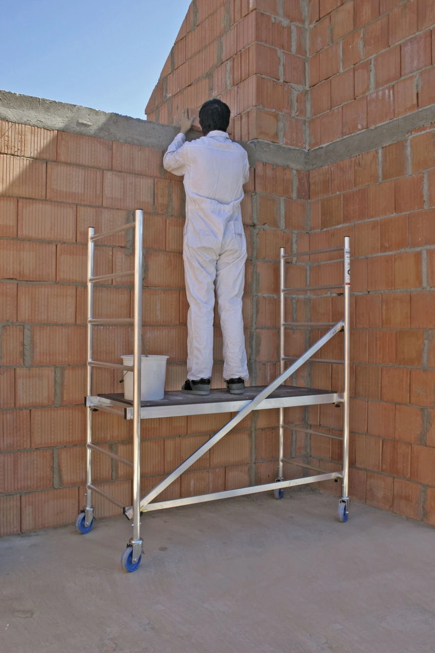 Rusztowanie jest lekkie oraz kompaktowe; sprawdzi się idealnie podczas prac wewnątrz, jak i zewnątrz budynku.